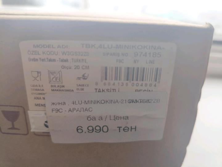 Продаю набор из 4 тарелок, новогодний стиль, бренд Waikiki Home. Набор продается вместе с коробкой, на которой сохранился ценник, покупали за 6 990 тенге. Состояние удовлетворительное, так как на 2 тарелках есть сколы, на 1 есть совсем небольшой скол. Также есть трещины на покрытии. Они вроде образовались из-за того что мыли под водой. Скорее всего это керамика доломит, этот материал имеет пористую структуру и часто покрывается мелкой сеточкой трещин от горячей воды или перепада температур. Артикул: 494823