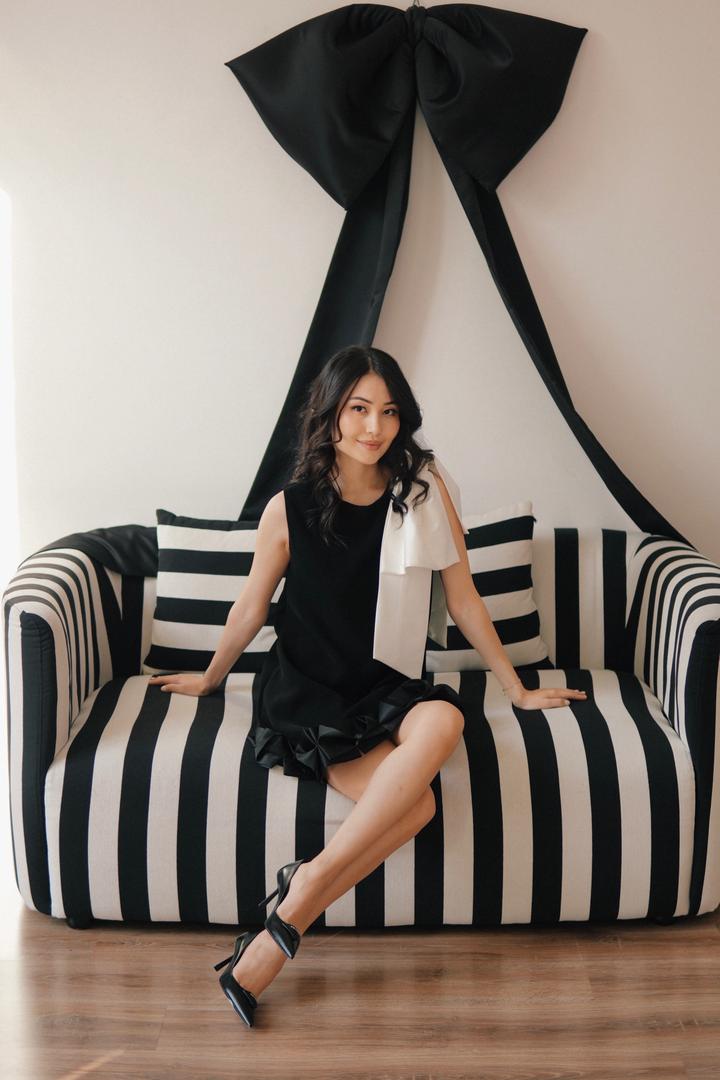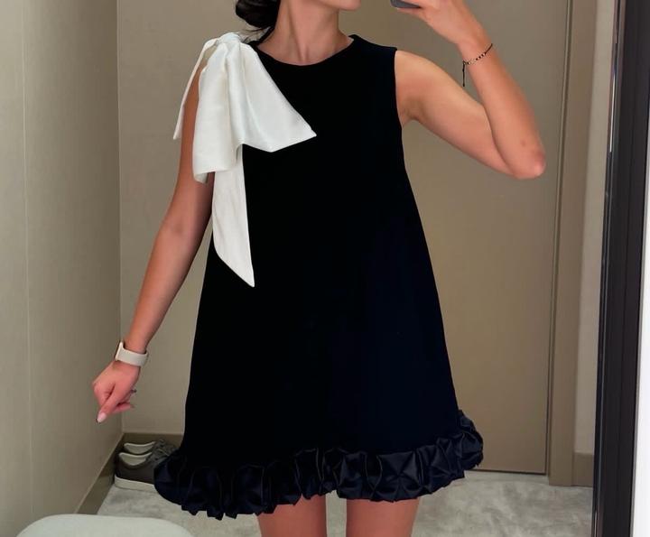 Черное платье со съемным бантомXS