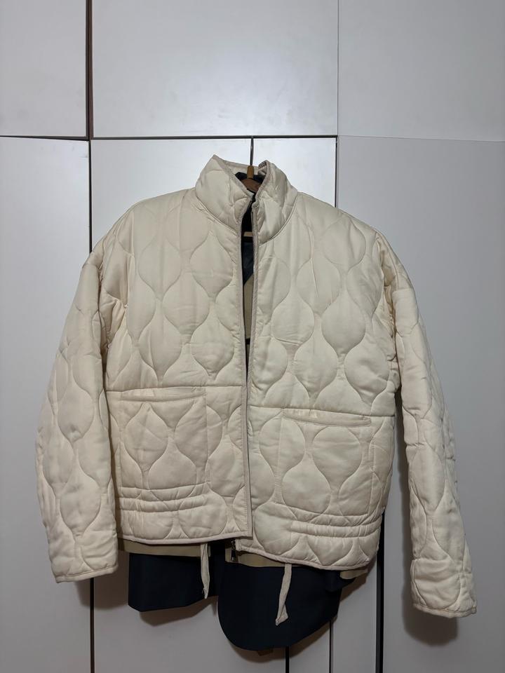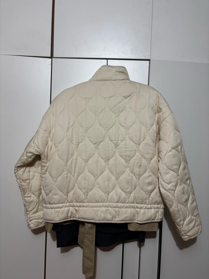 В идеальном состоянии куртка бежевого цвета. Куртка с воротником стойка и вместительными карманами. Заказывала с сайта, размер не подошел. Надевала только один раз, в идеальном состоянии, без единого пятнышка Артикул: 495234