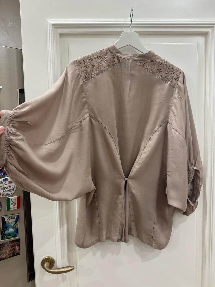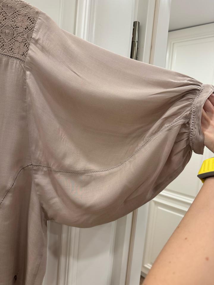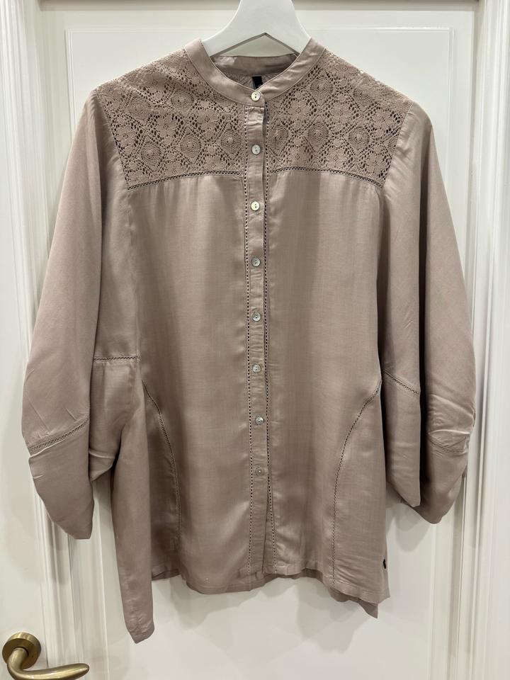 Красивая рубашка с вставками из кружева, размер S, цвет светло серый Артикул: 495297