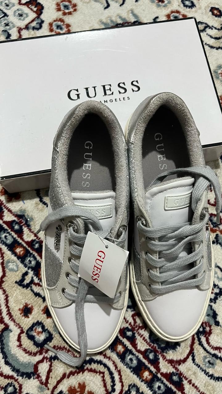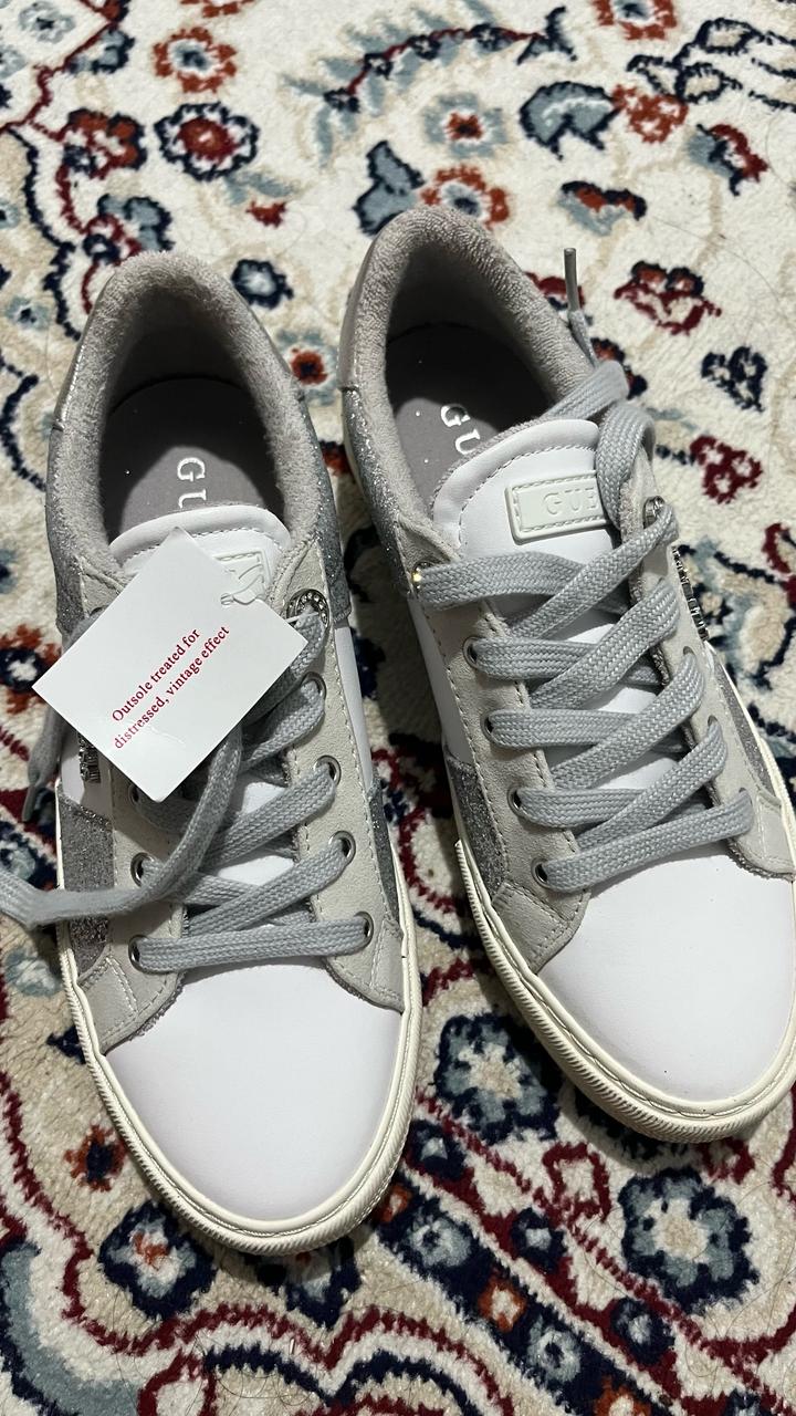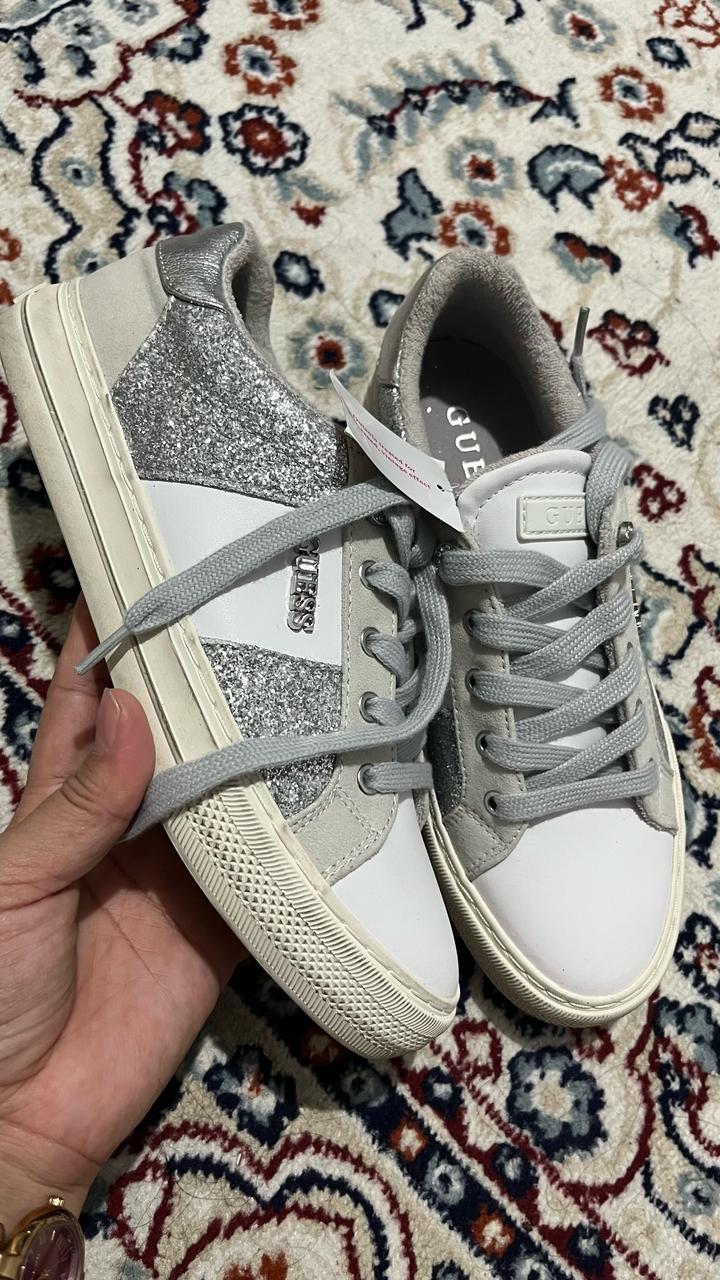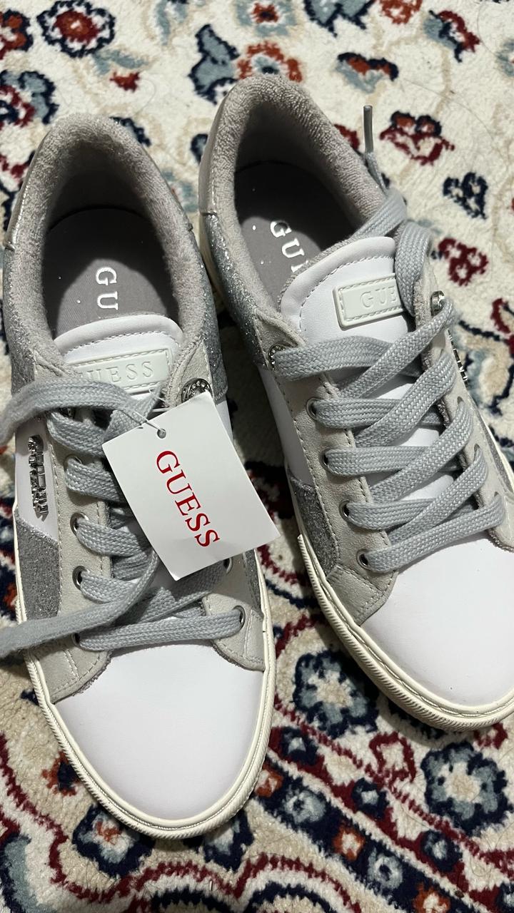Стильные женские кеды от Guess ✨ Элегантная модель, которая сочетает в себе комфорт и модный дизайн. Идеальный вариант для повседневных образов. Описание: • Верх из качественной эко-кожи • Блестящие серебристые вставки придают стильный акцент • Удобная мягкая стелька для комфорта на весь день • Классическая шнуровка для хорошей фиксации • Фирменный логотип Guess • Универсальный бело-серебристый цвет Артикул: 495419