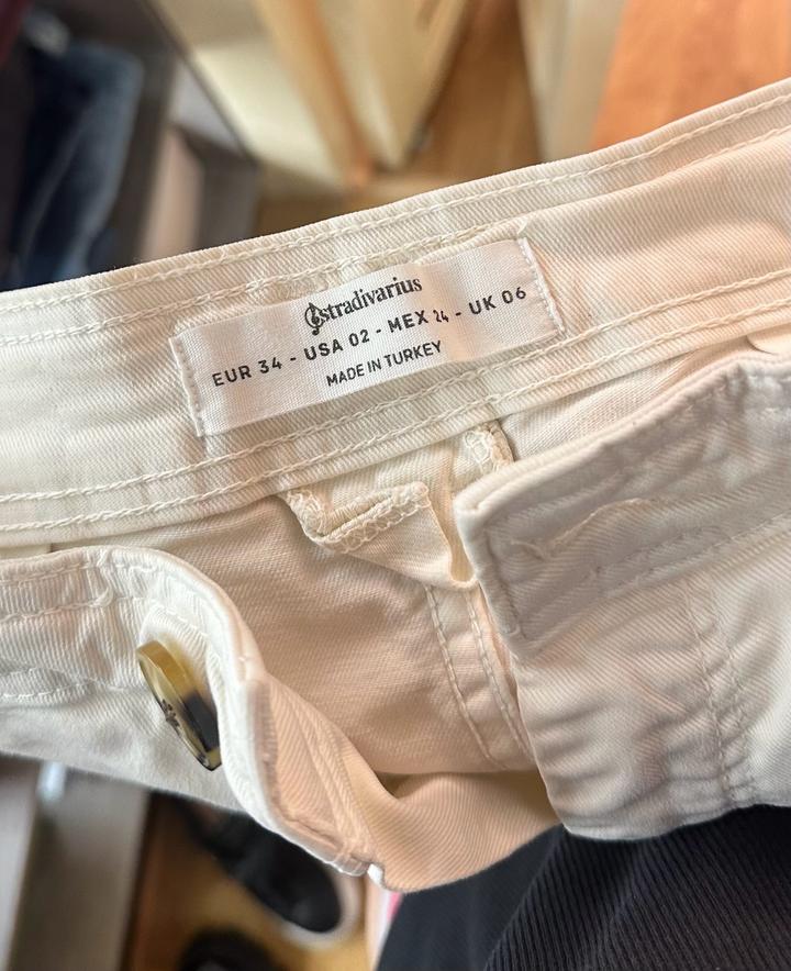 Брюки-кюлоты Stradivarius с высокой талией, цвет экрю (молочный) В хорошем состоянии, легкий не плотный деним Размер 34 (XS-S) Артикул: 495754