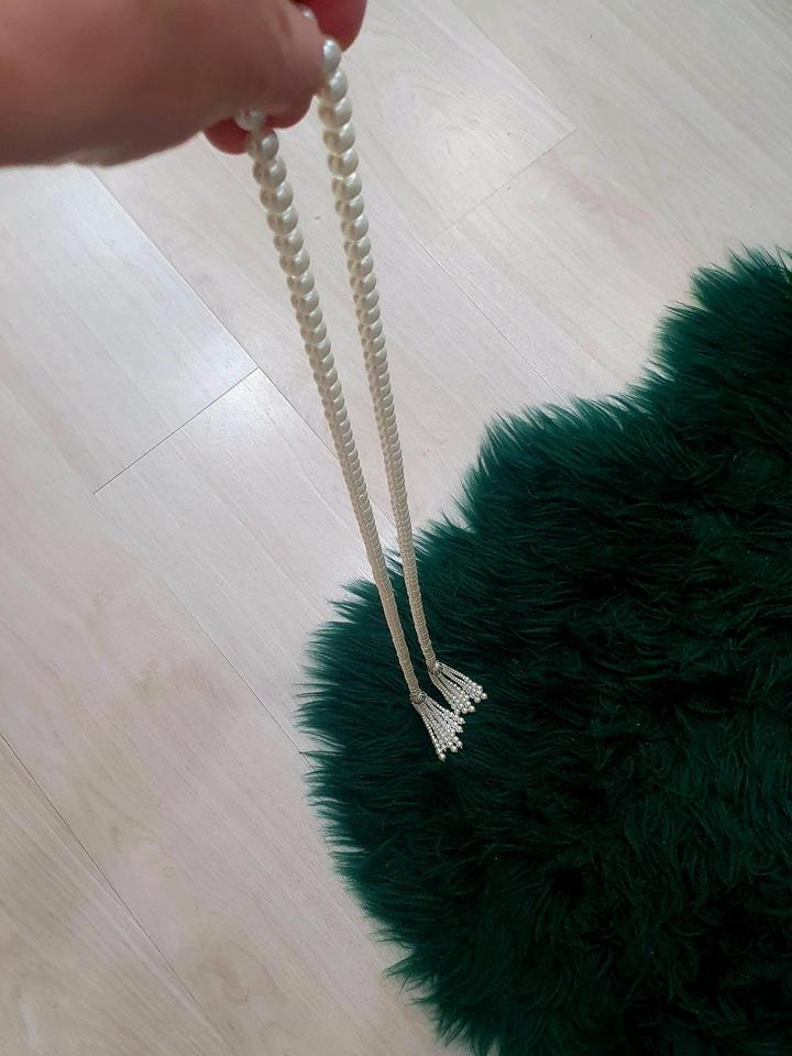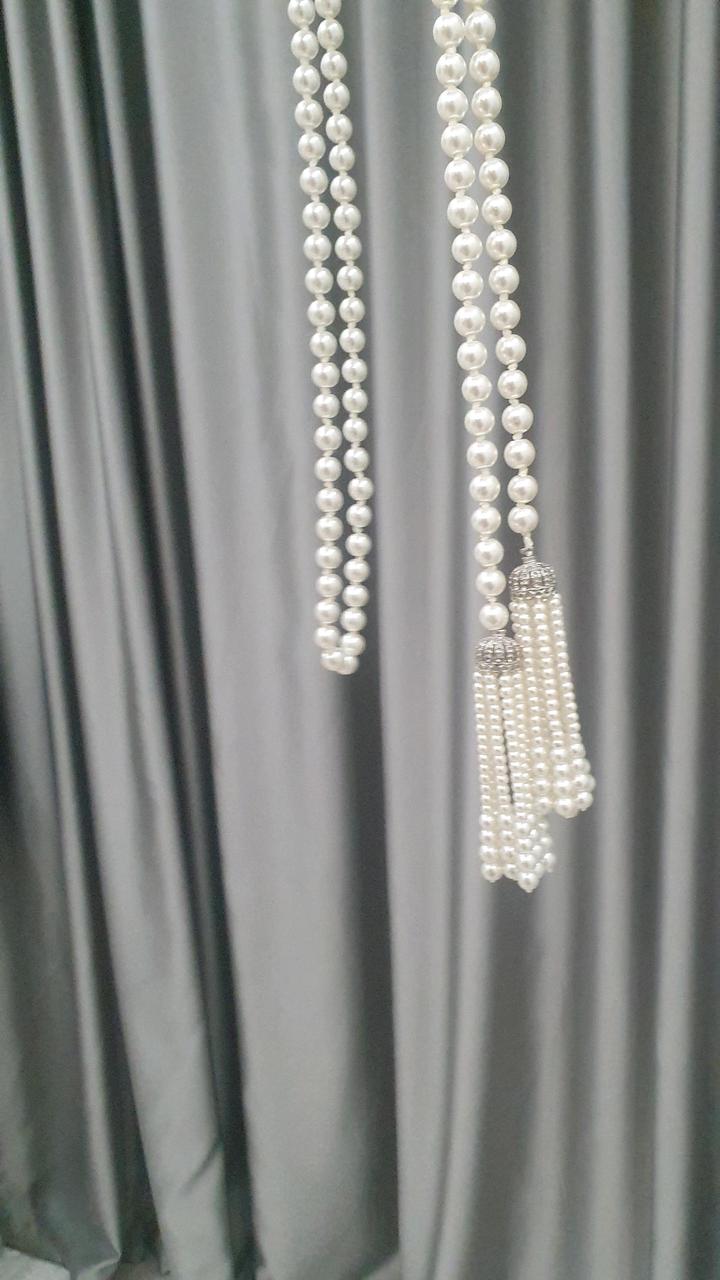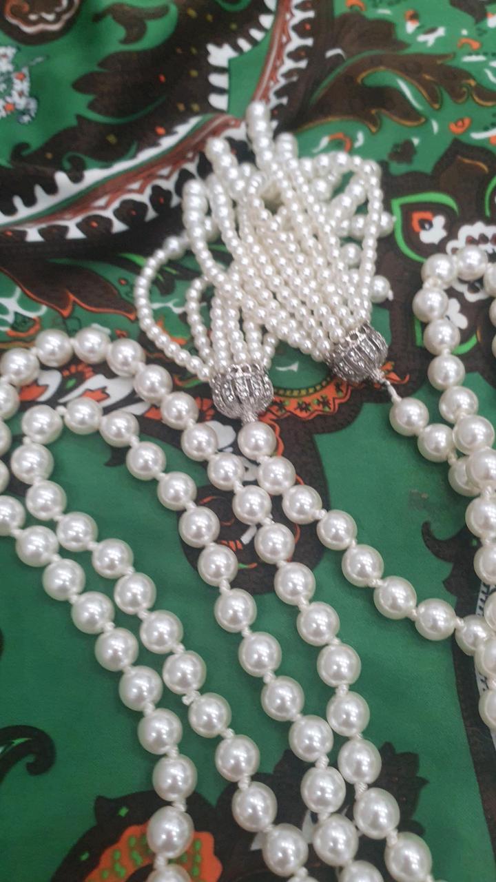 Нить из искусственного жемчуга, очень дорого смотрится. Повязывается как шарф. Длина изделия 1 м 55 см Артикул: 495857