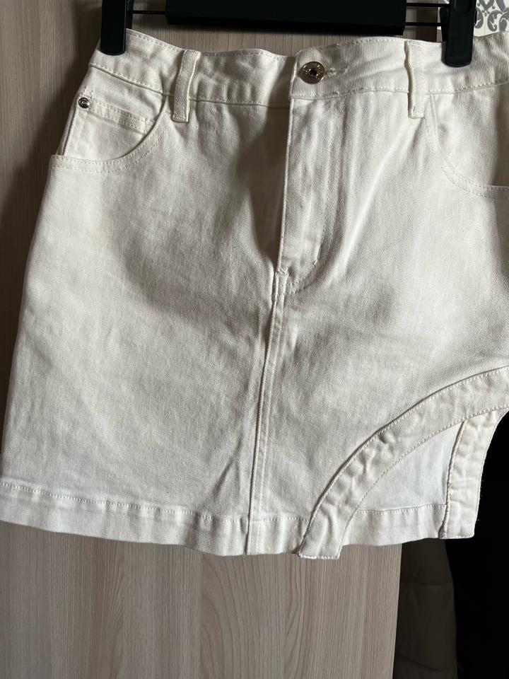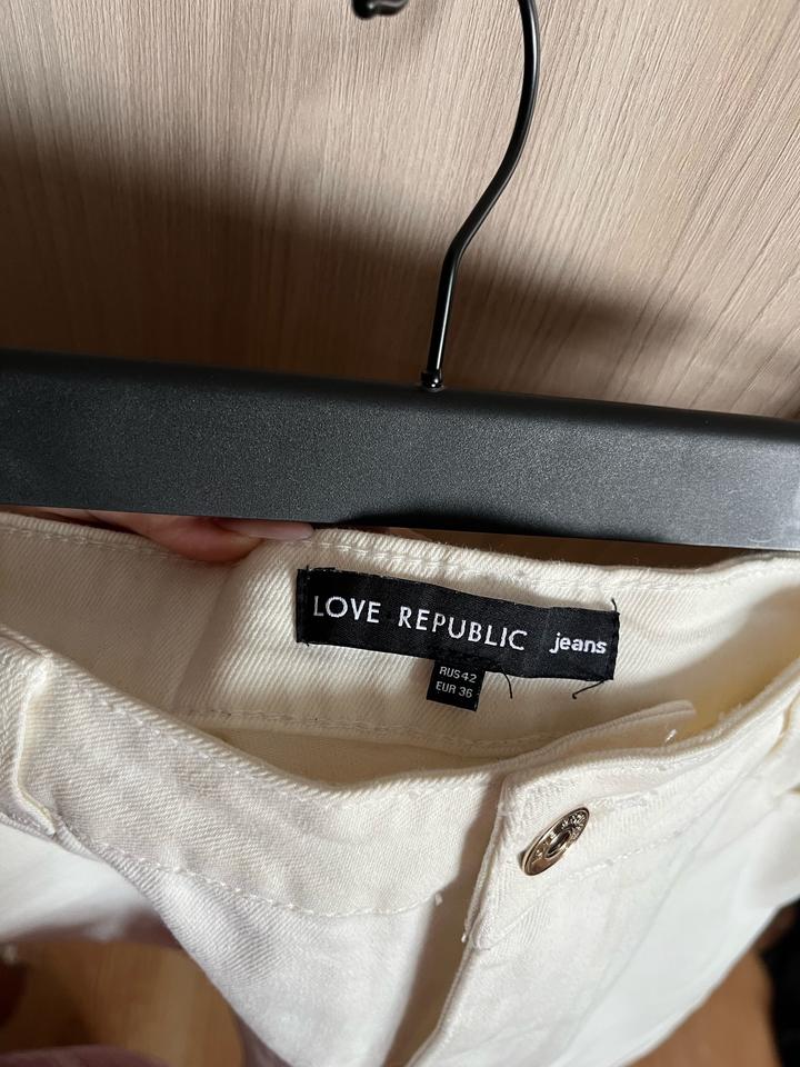Джинсовая юбка с вырезом от love republic. Одевала всего один раз. Сзади на кармашке есть полоска, требуется стирка, а так она без дефектов, в идеальном состоянии. Размер S Артикул: 495863