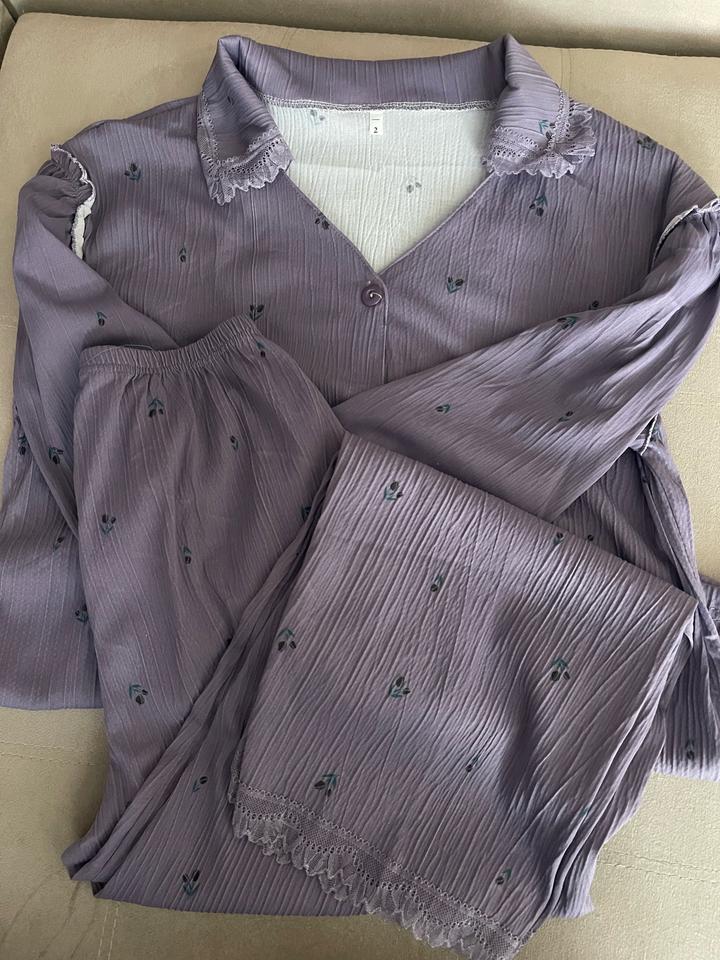 Лёгкая пижама, состоящая из брюк и верха в виде рубашки с длинными рукавами. Свободный крой обеспечивает комфорт и не сковывает движения.подойдет на размер с и м Артикул: 495991