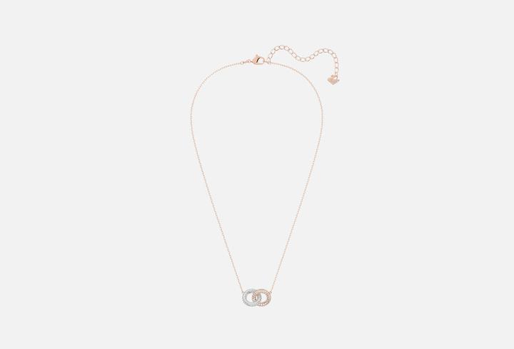 Колье с подвеской Dextera. Цвет: розово-золотой, прозрачный. Размер: Длина (мин - макс): 38 - 42 cm. Ширина: 1.9 cm. Материал: Бижутерный сплав, синтетические недрагоценные кристаллы, розово золотистое покрытие. Это колье, украшенное переплетающимися круговыми узорами, придаст роскошный вид любому наряду. Выполненное из металла с розовым позолоченным покрытием, оно сияет контрастными оттенками паве из золотого и прозрачного хрусталя. Абсолютно новый с коробкой не ношен совсем Артикул: 496060