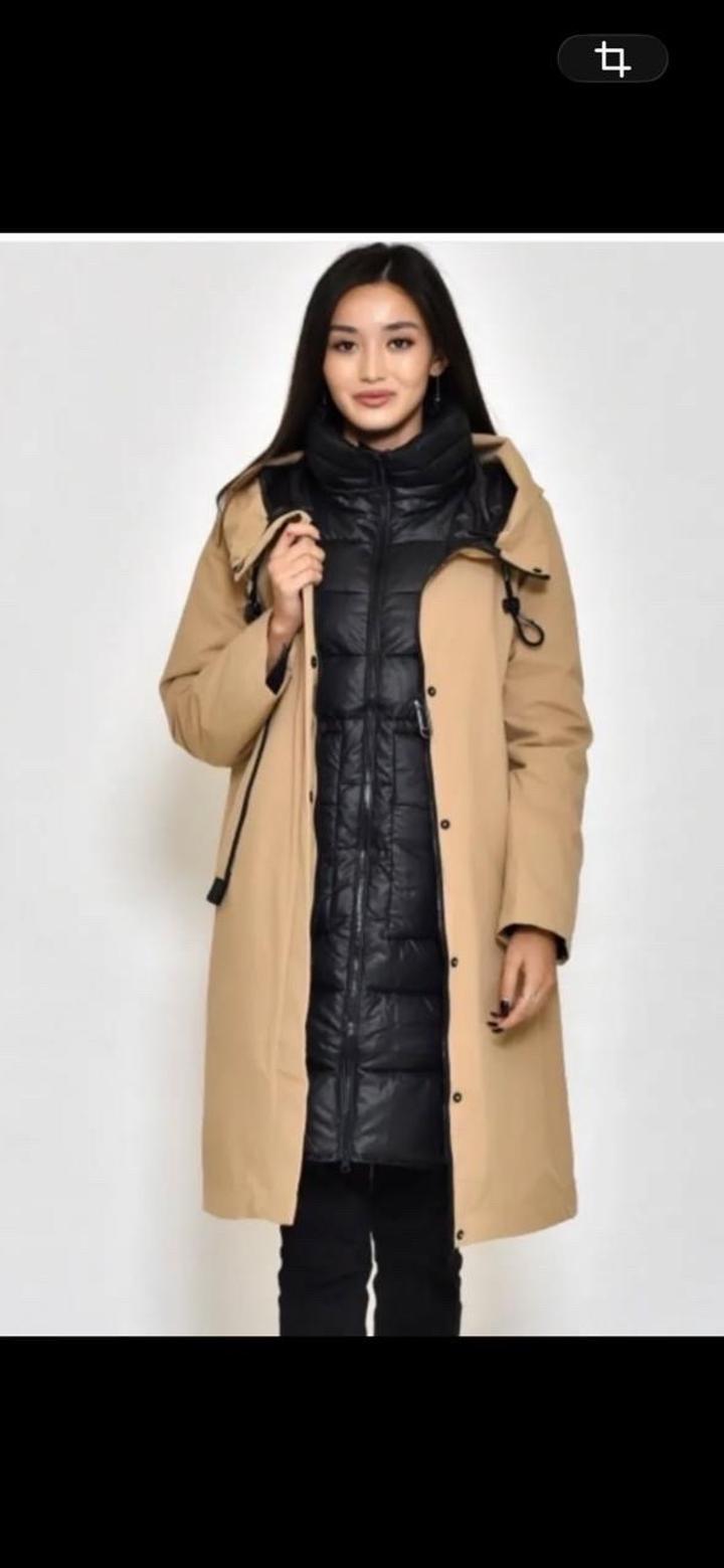 Продаю куртку 2 в 1. Куртка черная, утеплитель биопух, плащ с капюшоном oversize. Размер 42-44, надевала 2 раза. Артикул: 496145