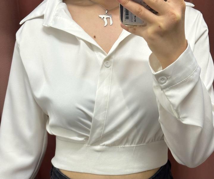 Атласная укороченая рубашка с утягивающим бандажом на талии Артикул: 496959