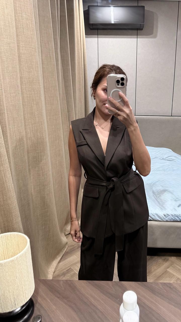 Шоколадный брючный костюмL