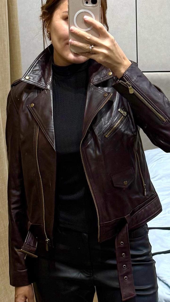 Кожанная куртка турецкого производства, в винном цвете, подходит на S Артикул: 497283