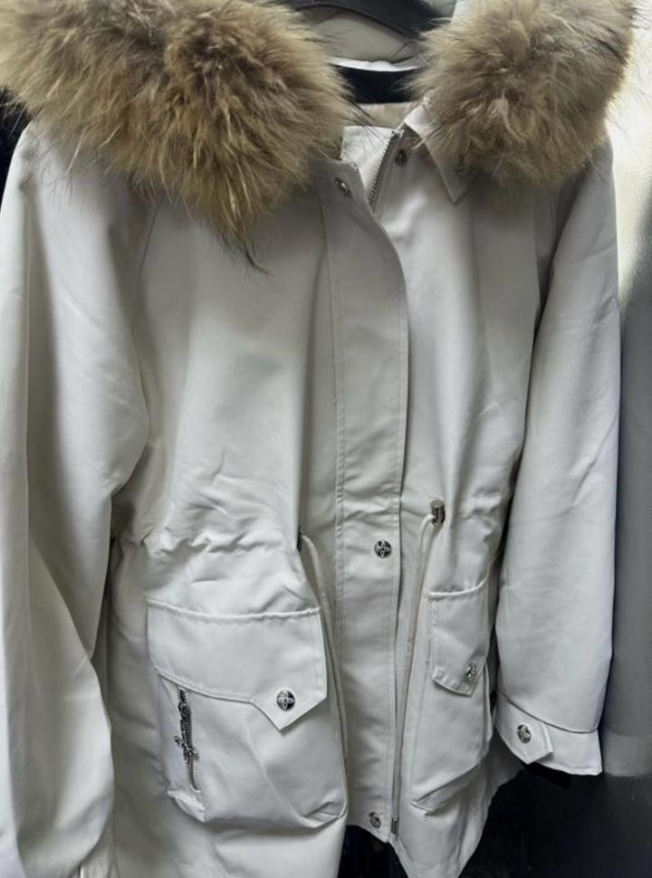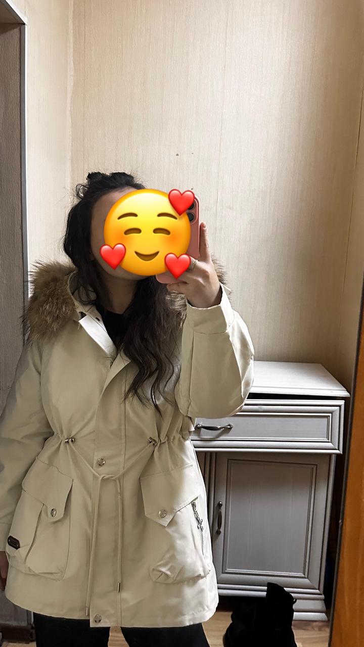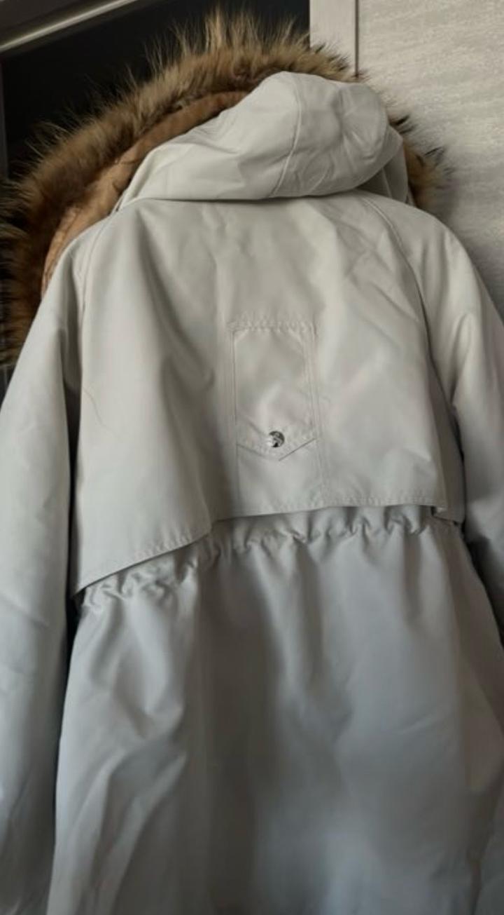 Есть съёмная подкладка, поэтому можно носить в тёплую и прохладную погоду. Капюшон с мехом. Состояние хорошее. Очень удобная и практичная. Артикул: 497311