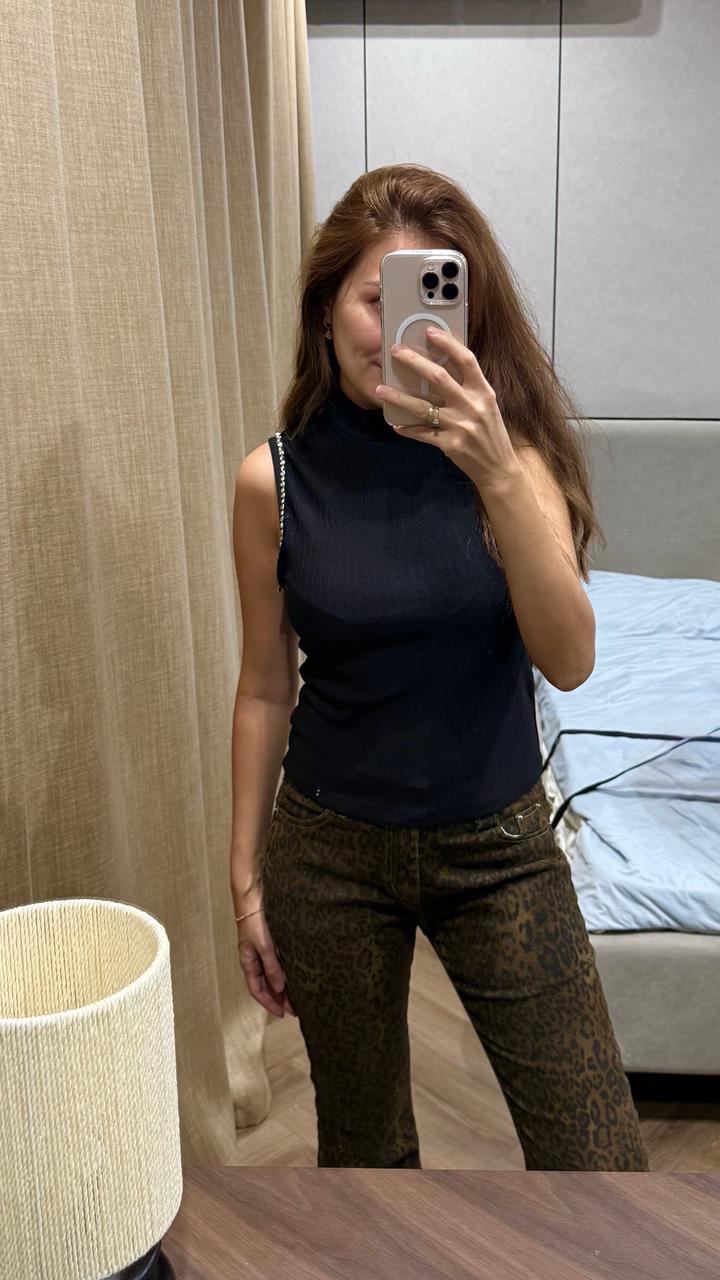 Леопардовые джинсы + топ с высоким горлом (1500)M