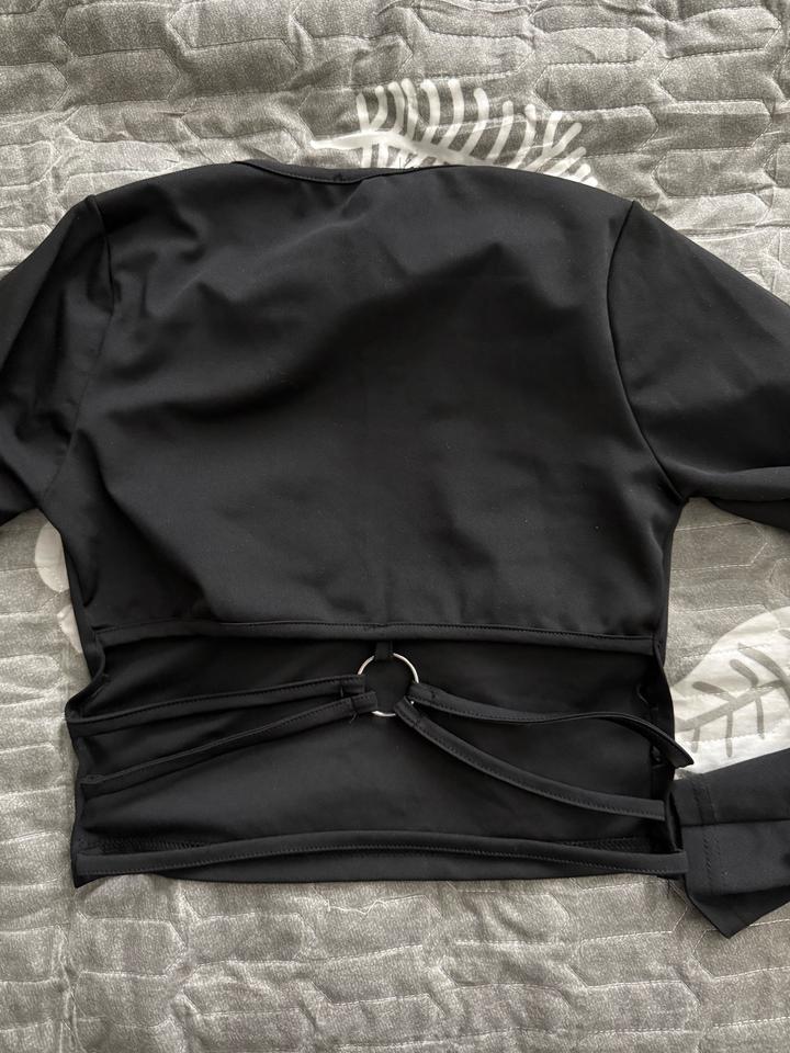 Черная кофточка,кроп-топ Размер S,надевалась пару раз Сзади спинка на половину открыта,красиво смотрится Артикул: 497940