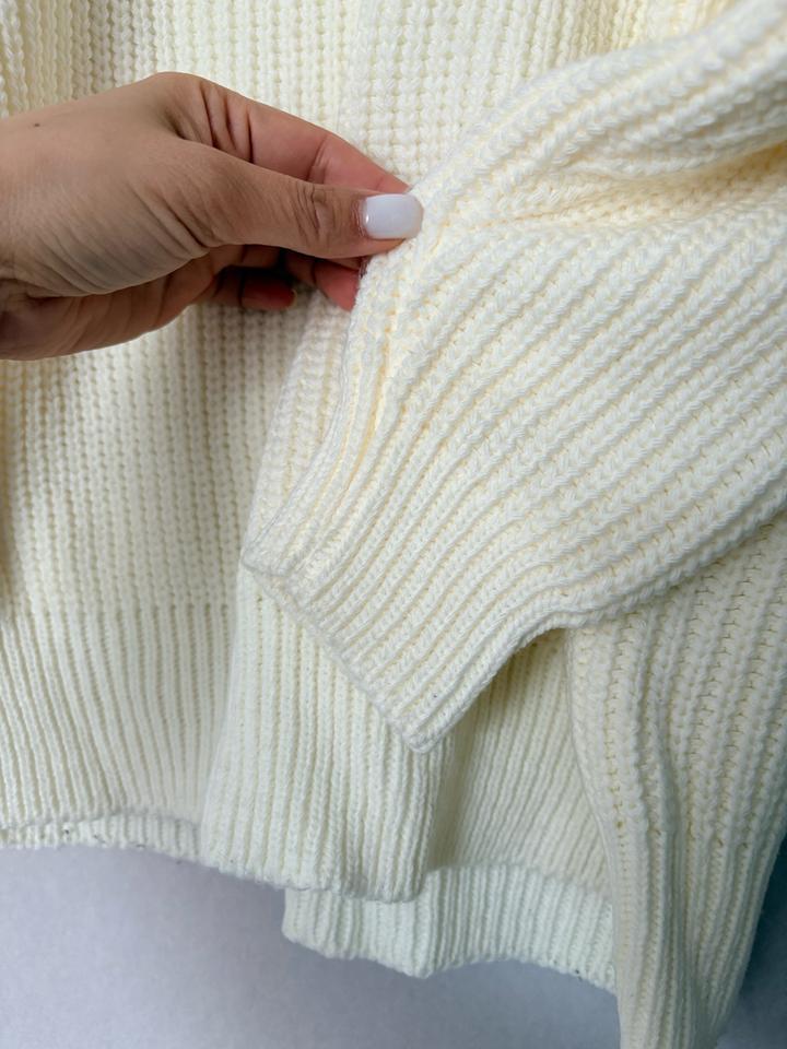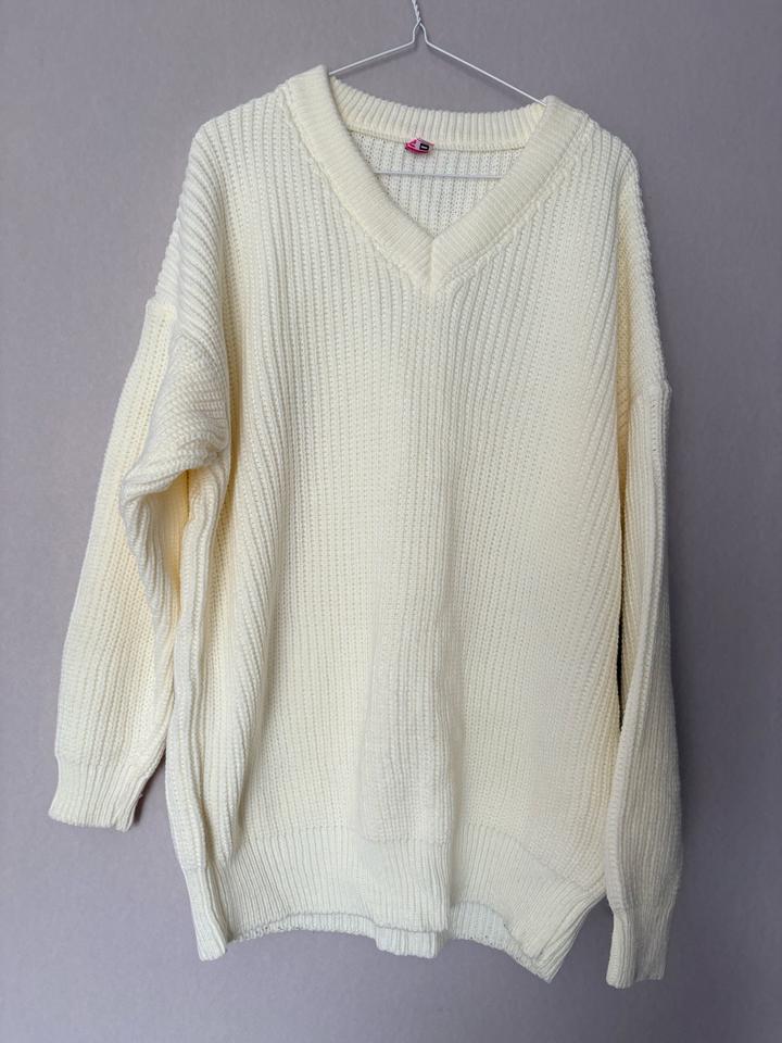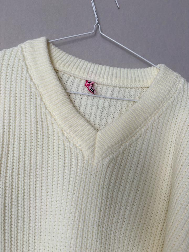 Девочки, стильный и уютный свитер нежного молочного цвета. Модель свободного кроя с V-образным вырезом, выполнена из мягкой плотной вязки, приятной к телу. Отлично подойдёт для прохладной погоды и легко сочетается с джинсами, брюками или юбкой. ✨ Свободный oversize крой ✨ Красивая фактурная вязка ✨ Универсальный базовый цвет ✨ Тёплый и комфортный Состояние: отличное. Подойдёт для создания уютных повседневных образов. Артикул: 498176