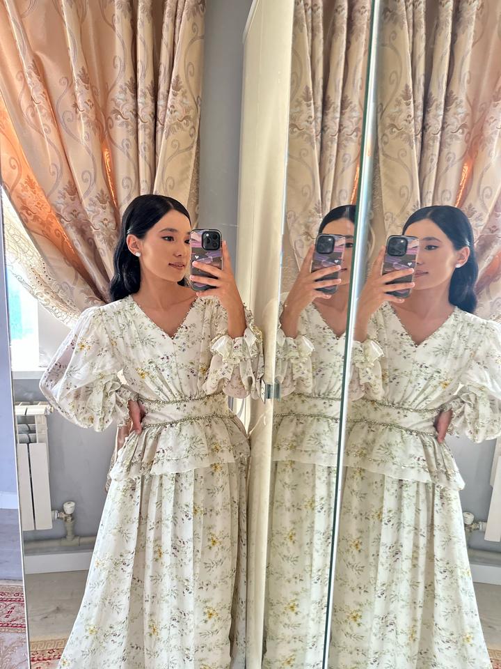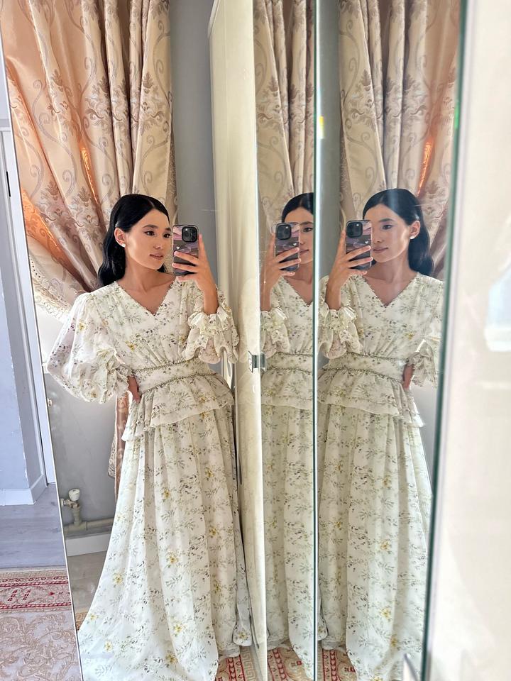 Продается невероятно нежное и женственное платье макси с цветочным принтом. Идеальный вариант для «Қыз ұзату», свадеб, выпускных или весенних фотосессий. Фасон продуман так, чтобы подчеркнуть достоинства фигуры и создать воздушный образ. Артикул: 498230