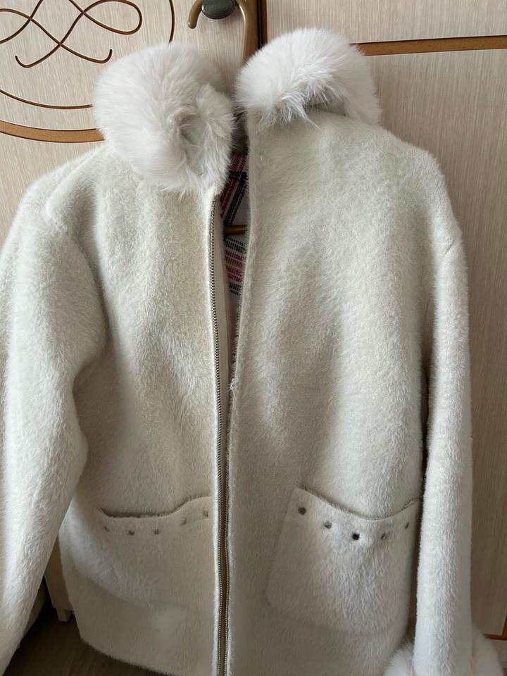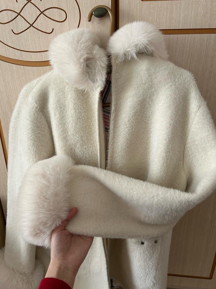 Элегантное зимнее пальто молочного цвета с меховым воротником и меховыми манжетами 🤍 Очень мягкое и тёплое, выглядит дорого и аккуратно. Отлично подойдёт как под повседневный, так и под более нарядный образ. Не носилось, новое без бирок Артикул: 498340