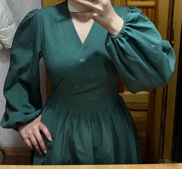 Фасон: Платье-халат (фиксируется поясом на бант). Без дефектов . На рост 160 см длина этого платья будет прямо по колено. Артикул: 498554