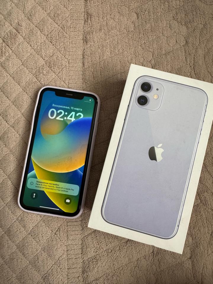 Сиреневый IPhone 11, 128 гб в хорошем состоянии. Есть маленькая царапина на экране Артикул: 498615