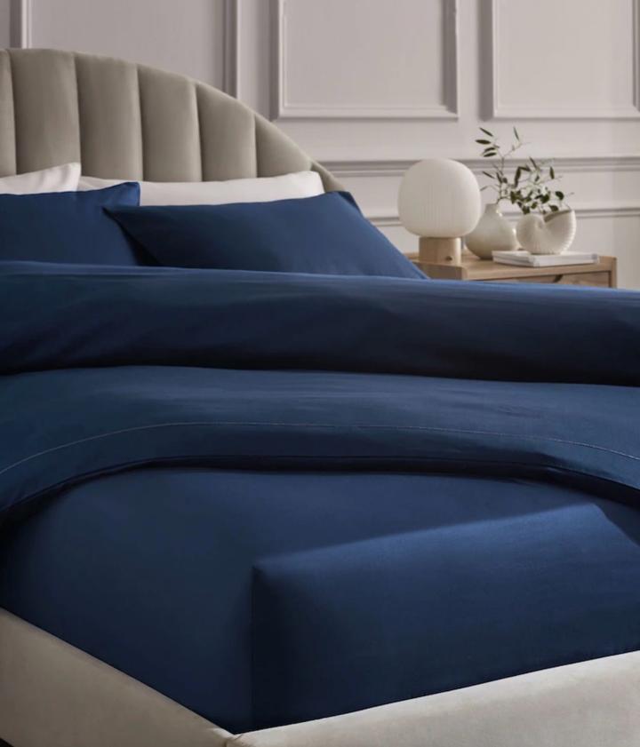 Простынь на резинке 160*200/180*200 из премиального хлопка с хорошими широкими бортиками, цвет темно синий. Артикул: 498941