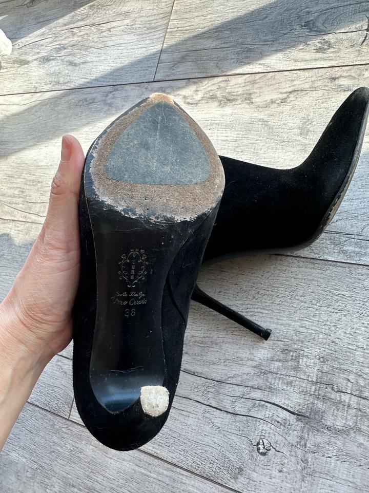 Высота каблука 10 см, удобная колодка. Не обтягивают, обуваются свободно, молнии нет. Артикул: 499085