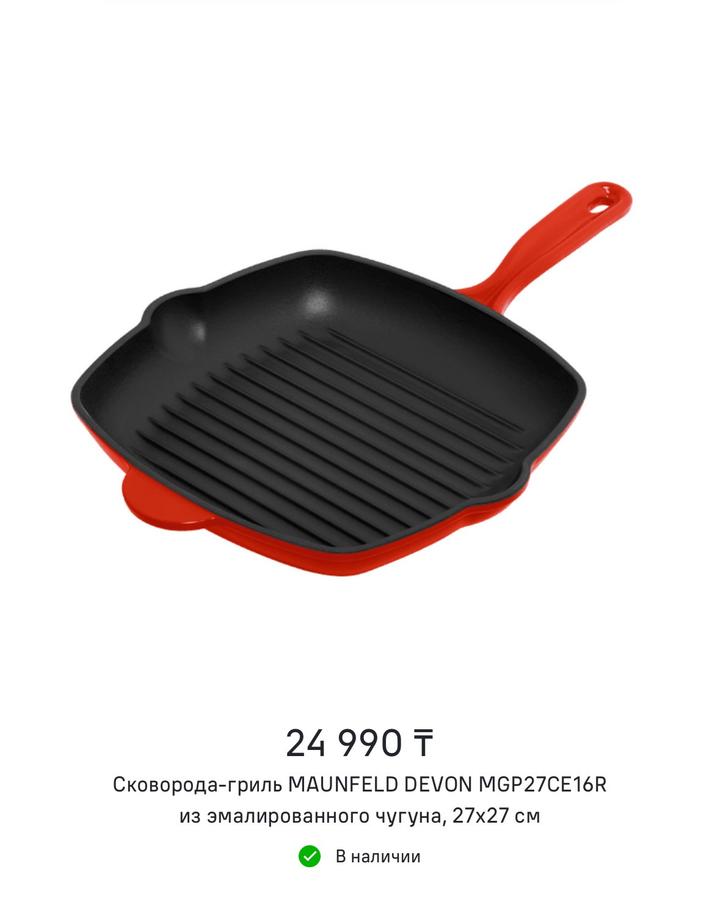 Использовала 1 раз, не мой способ готовки. Сковорода тяжелая, чугунная. Красивая. Артикул: 499091