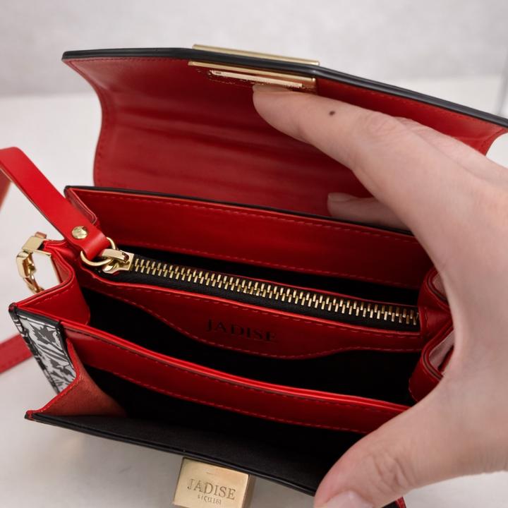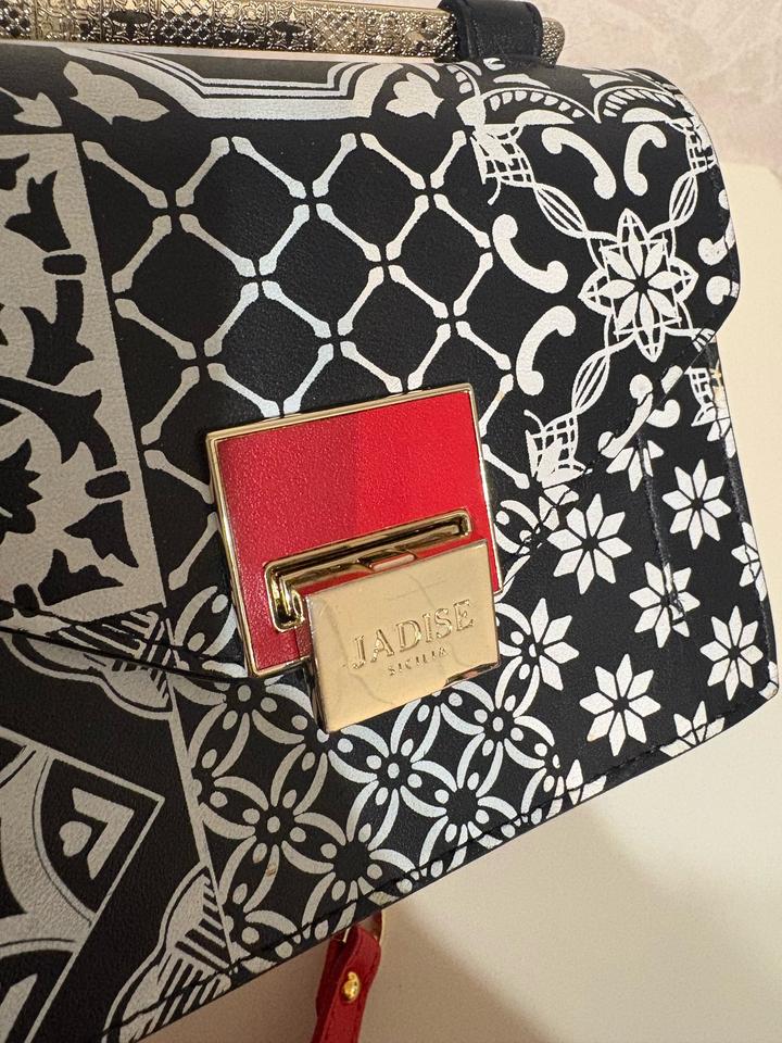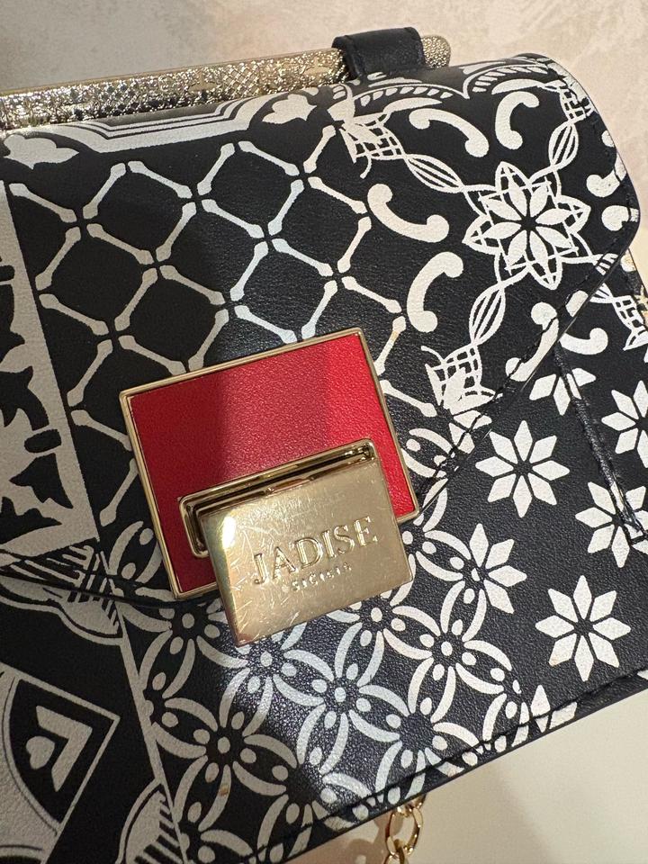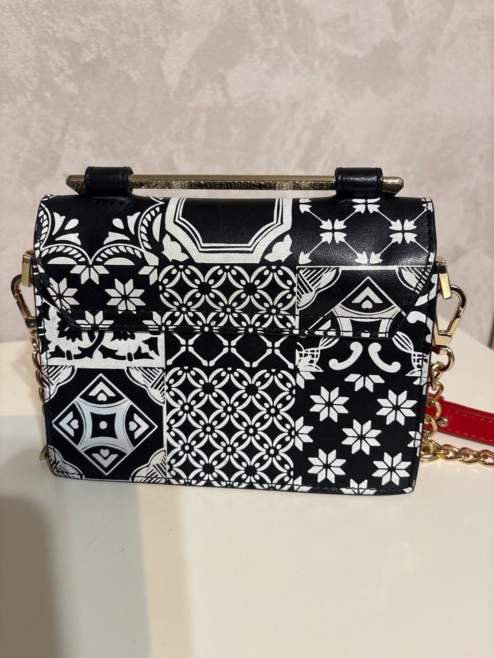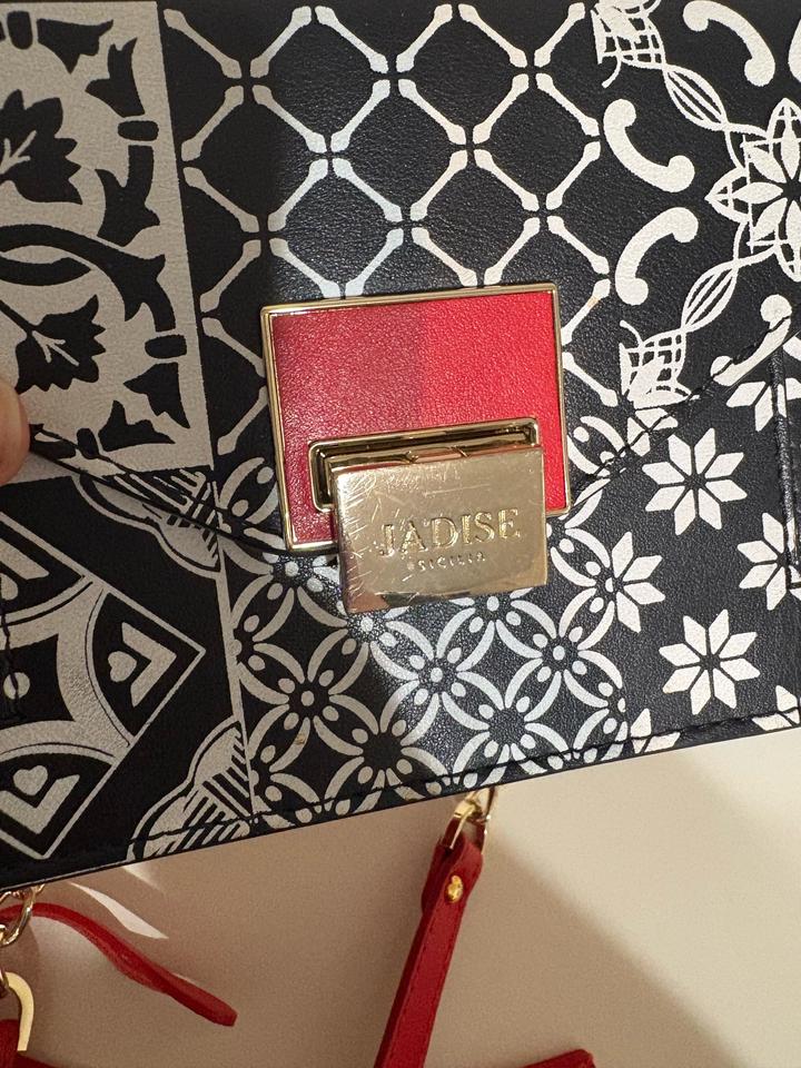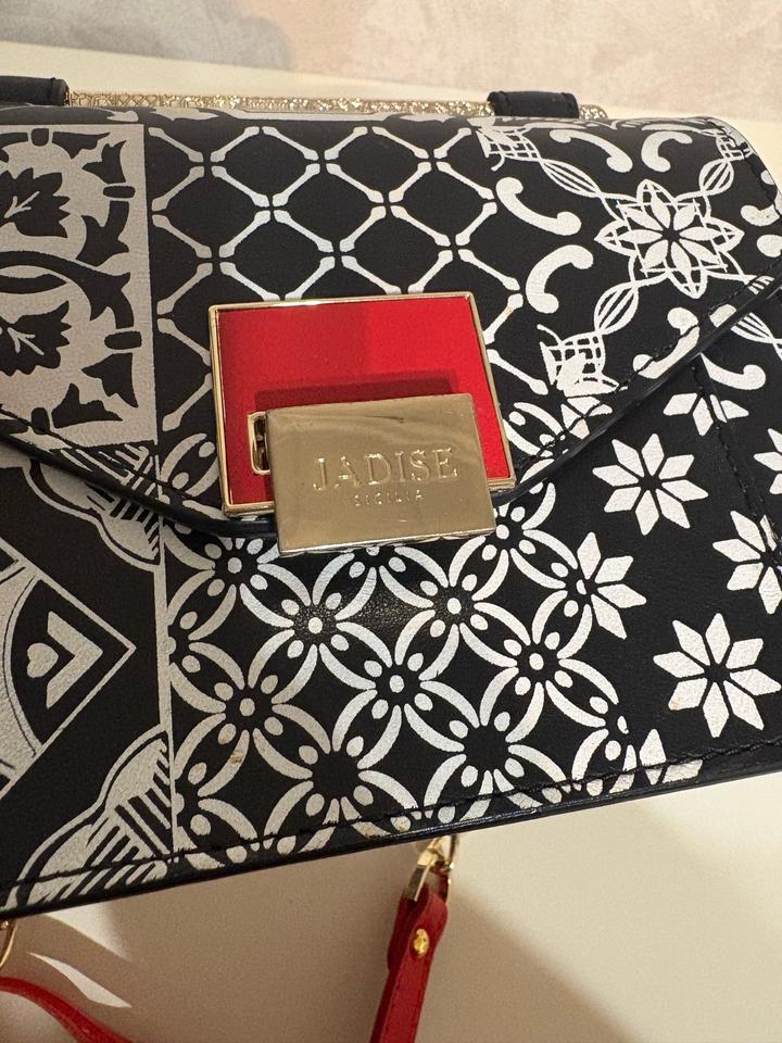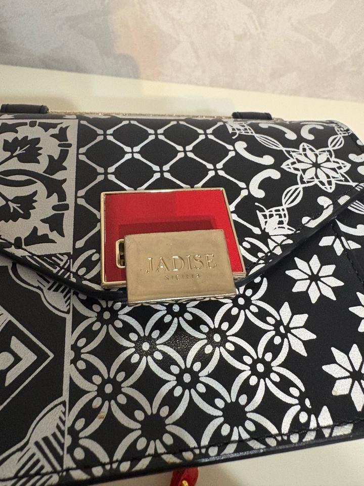 Итальянский бренд Jadise Очень эффектная модель в стиле сицилийской плитки. Натуральная кожа, металлическая ручка, длинный ремень через плечо. Внутри красная кожа и карман на молнии. Состояние хорошее. Подойдёт как яркий акцентный аксессуар Артикул: 499127