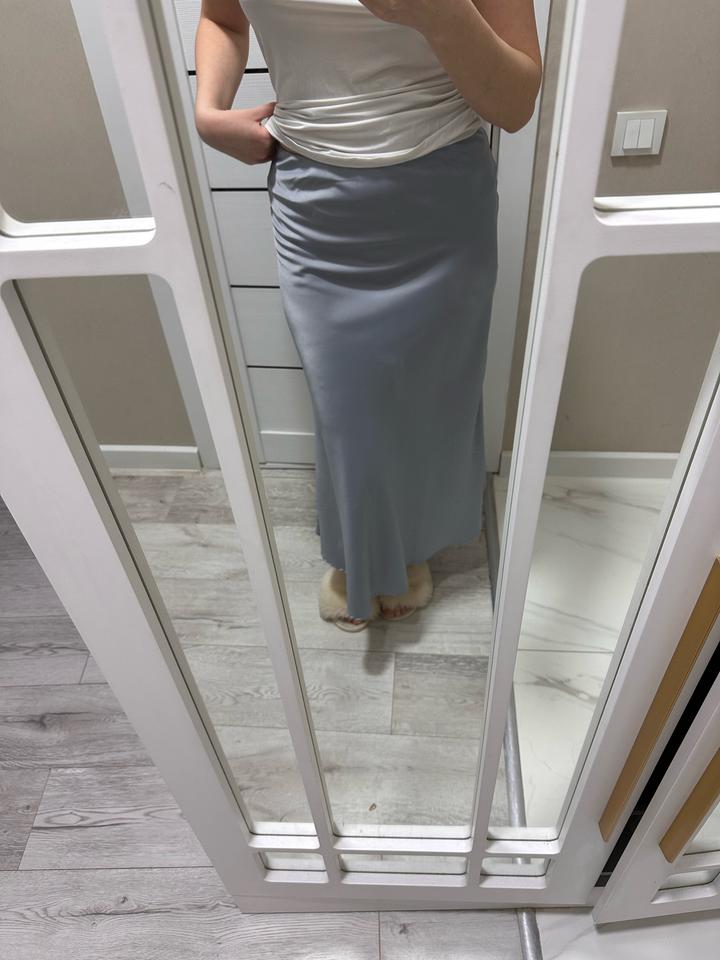 Атласная юбка светло голубого оттенка, размера S Отлично подойдет на весну и лето с белым верхом Артикул: 499246