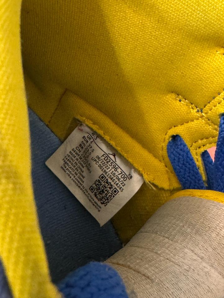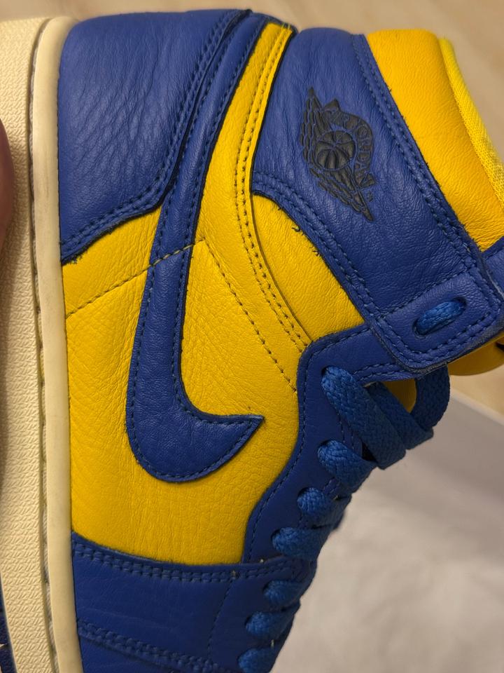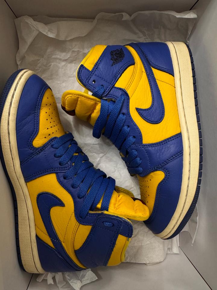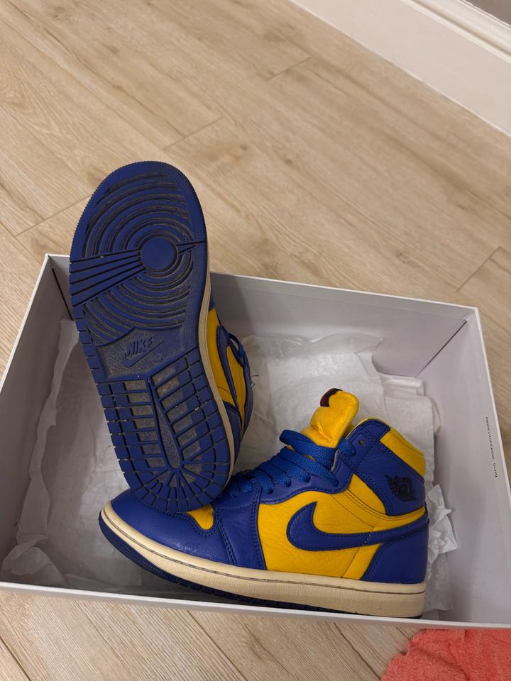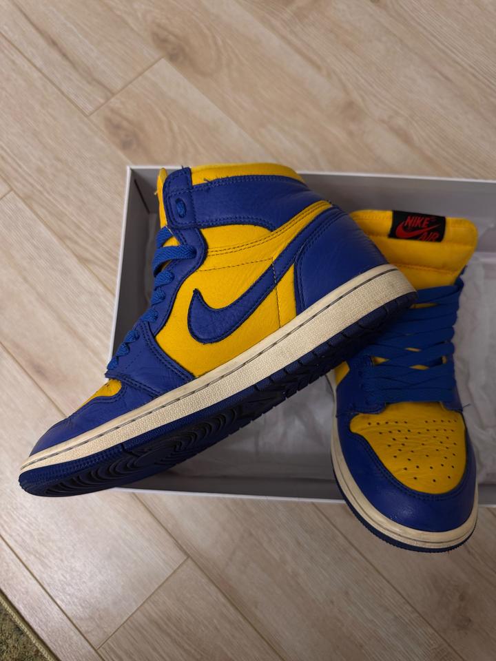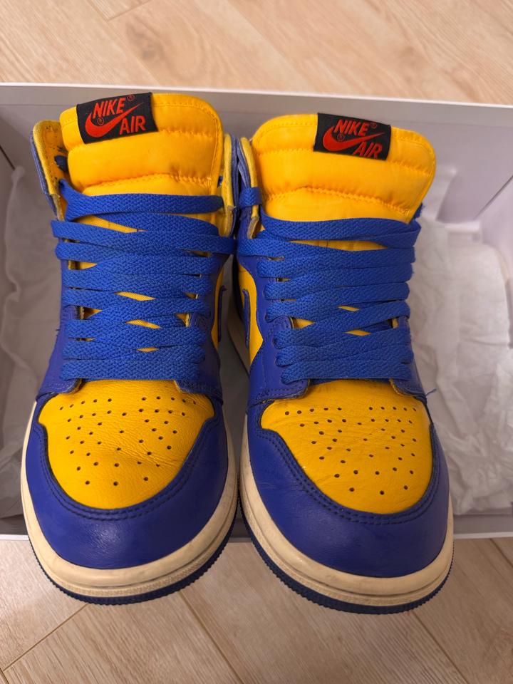 Air Jordan 1 Retro High OG с оригинального бутика (к сожалению, коробка не сохранилась). Дополнительно есть шнуры желтого цвета. Кожа Артикул: 499647