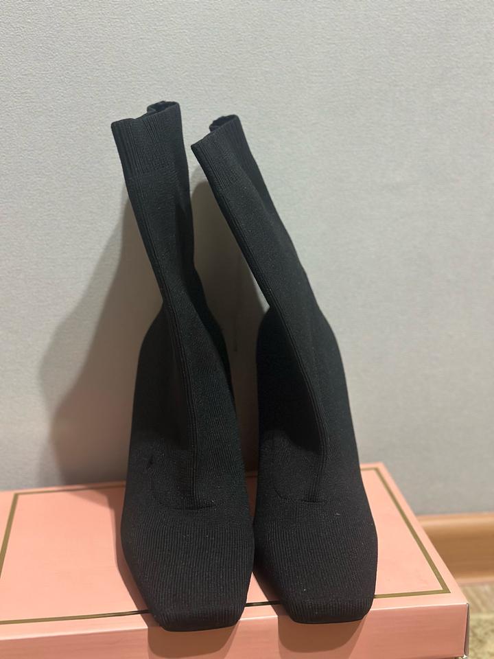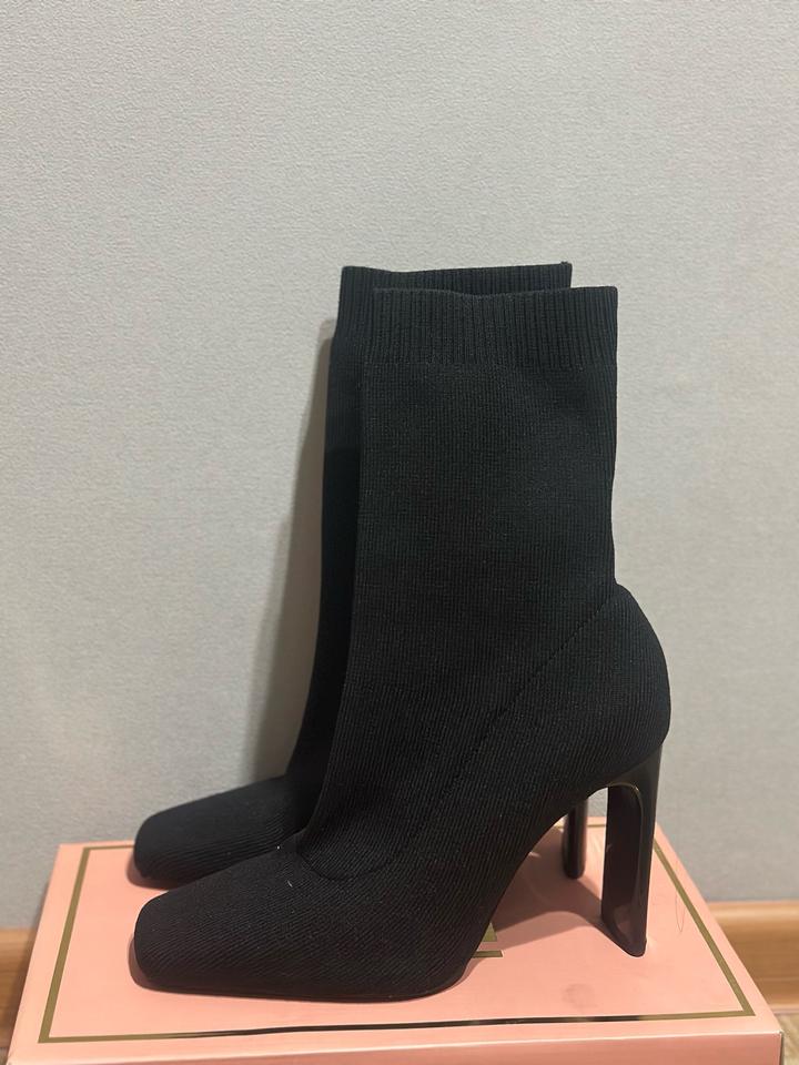 Черные ботильоны, верхняя часть в виде носка плотно облегает ногу. Очень красиво смотрятся на ноге, квадратный мыс Артикул: 499740