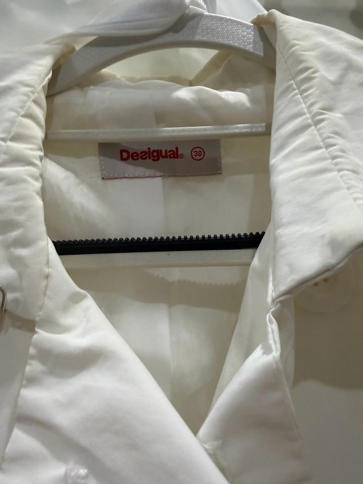 Белый плащ, длина ниже попы. Размер 38 европейский. Покупала в Австрии, Прага. Носила 1 раз, висит. Бренд Desigual, Испания. Состояние нормальное, нужна химчистка Артикул: 499799