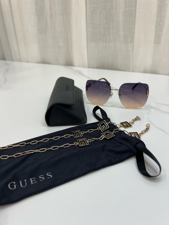 Очки женские Guess были в использовании недолго. В отличном состоянии, с футляром, чехлом и цепочкой. Было куплено в Дубай Guess. Артикул: 499845