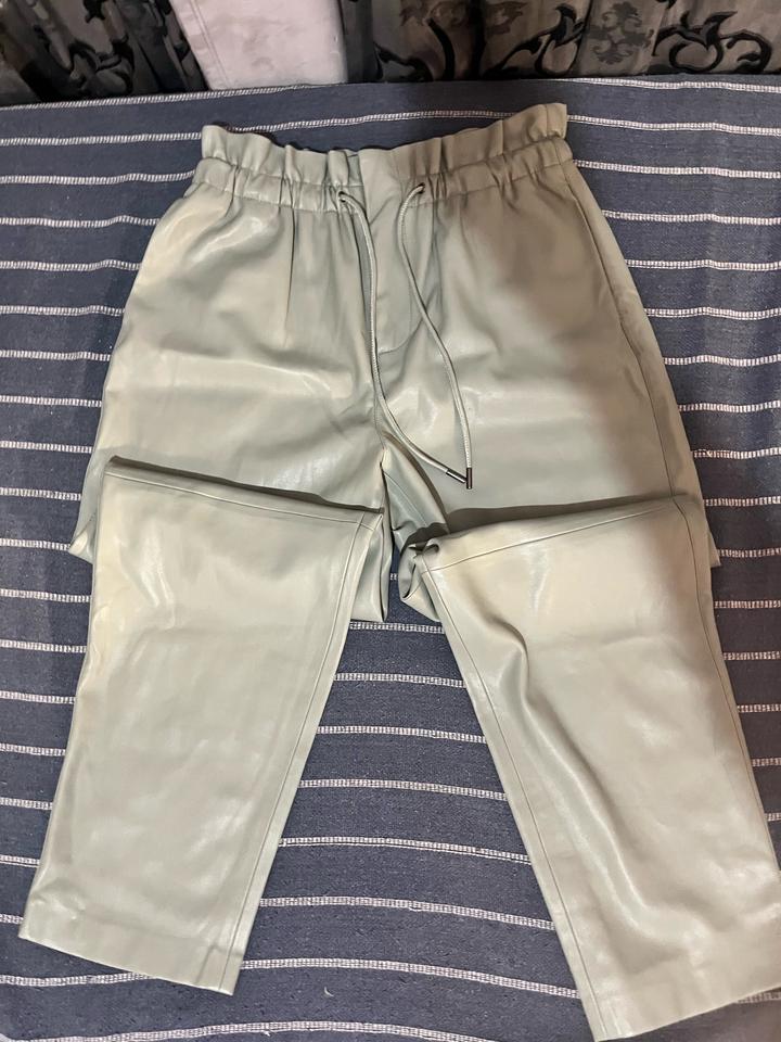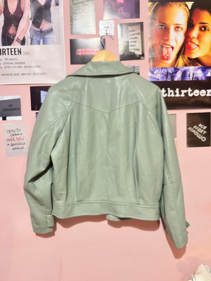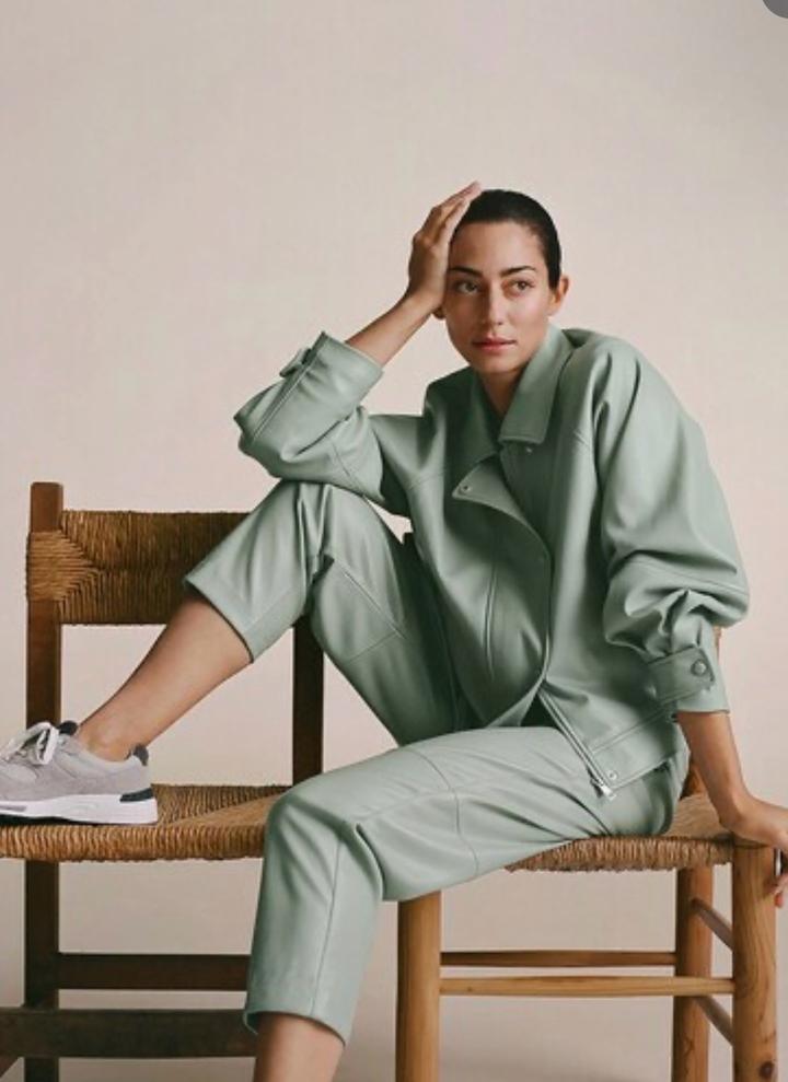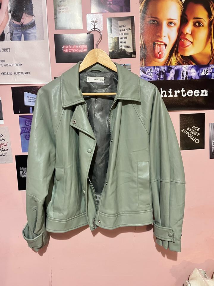 Кожаный костюм оливкого цвета от MANGOM
