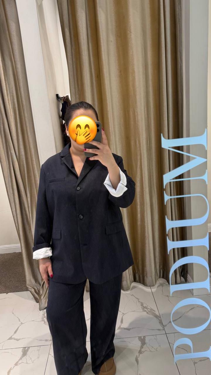 Свободный жакет и прямые брюки из плотной костюмной ткани мягко держат форму, создавая утончённый силуэт с лёгким намёком на силу и уверенность. Артикул: 500272
