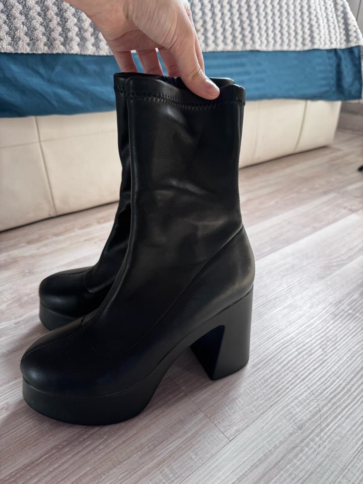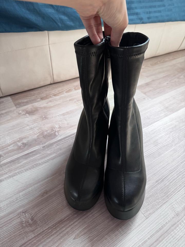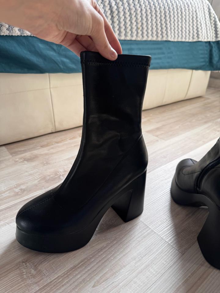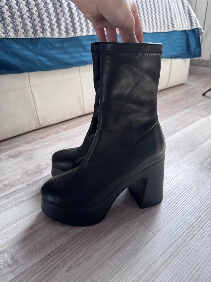 Сапоги укороченные на платформе. Размер 38 Черные Артикул: 500397