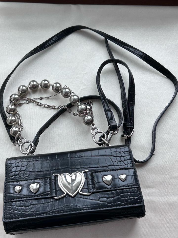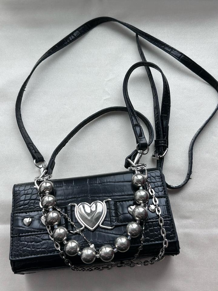 Кішкентай қара сөмке, моншақтары бөлек алынады. Артикул: 500408