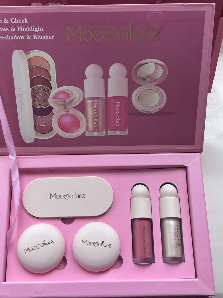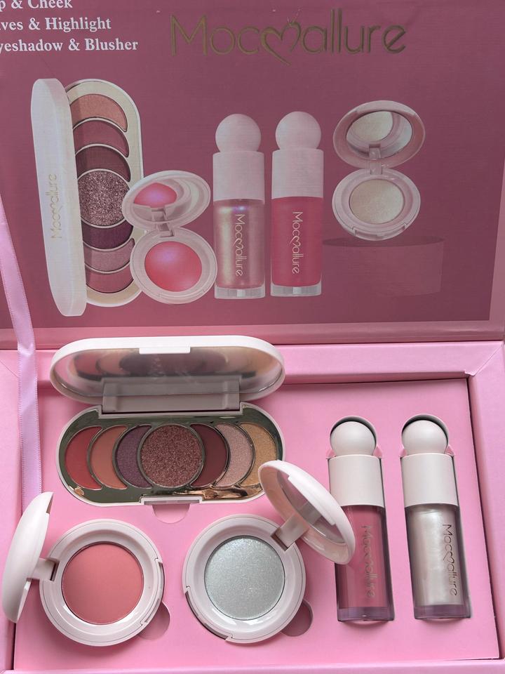 Набор косметики от бренда “Mocallure” В наборе: Румяна: сухая жидкая Тени для век Жидкий хайлайтер Сухой хайлайтер Артикул: 500422