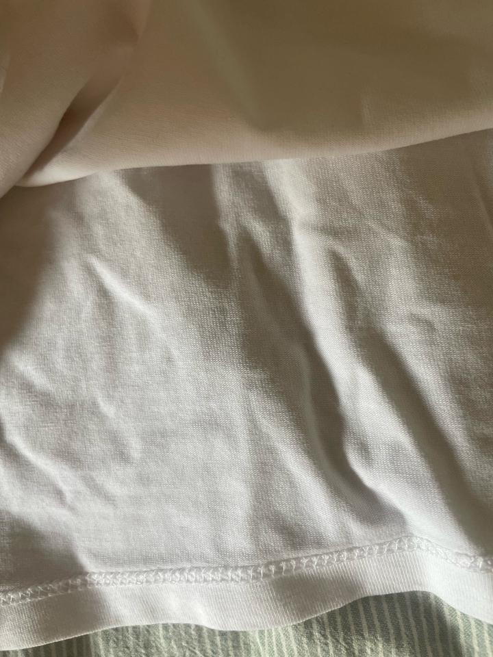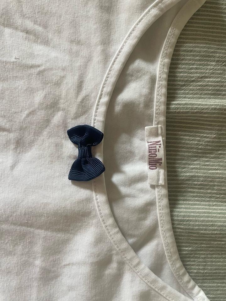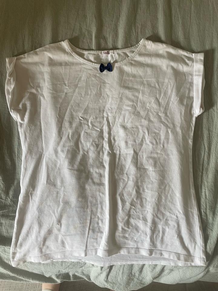 белая школьная футболка с синим бантикомS