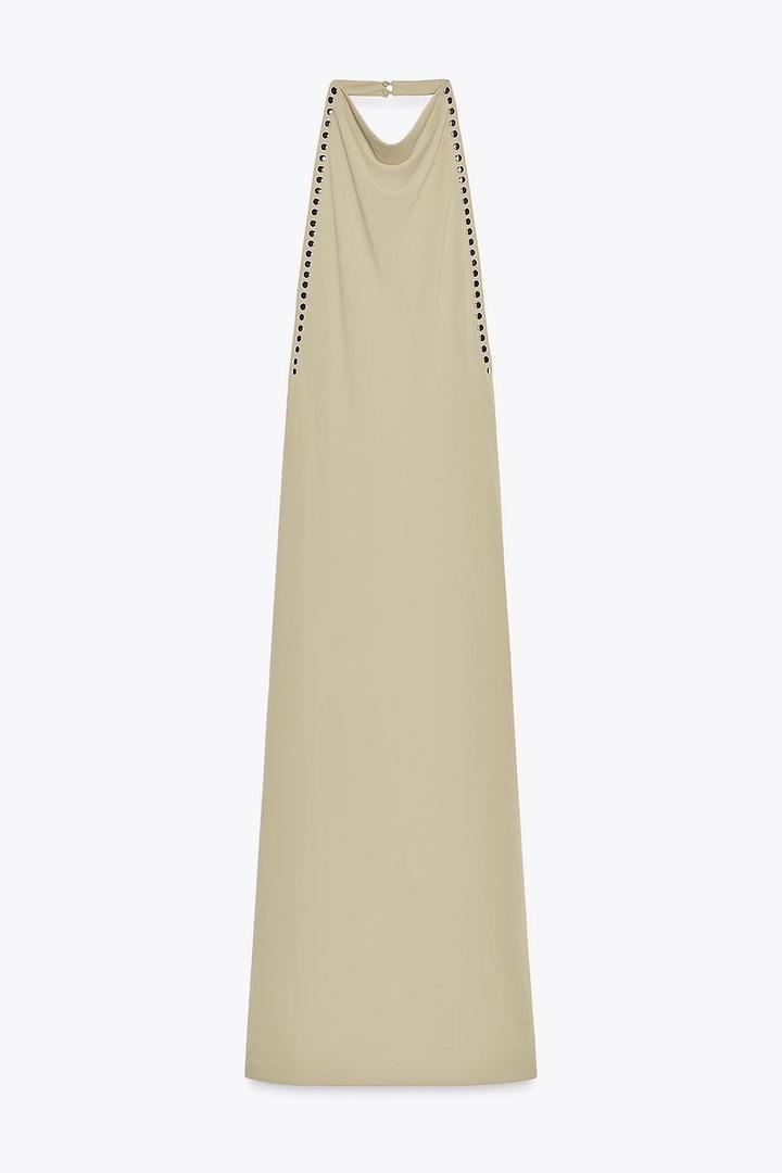 платье с заклепками и бретелькой через шеюS