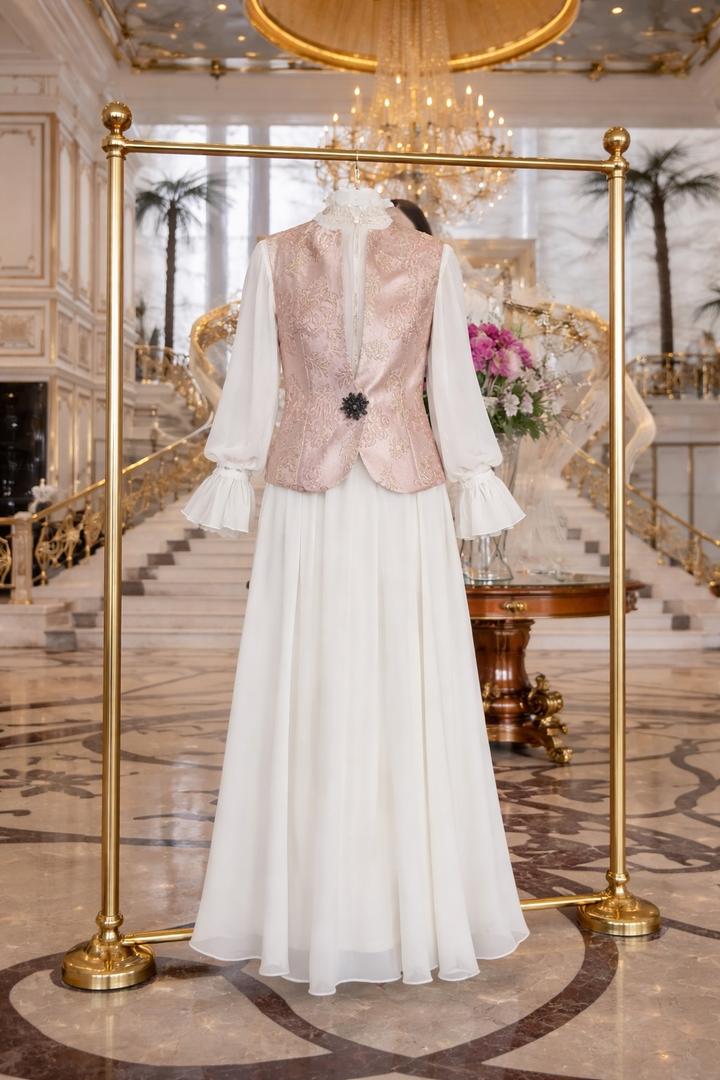 Белое платье с жилетом в национальном стилеS/M