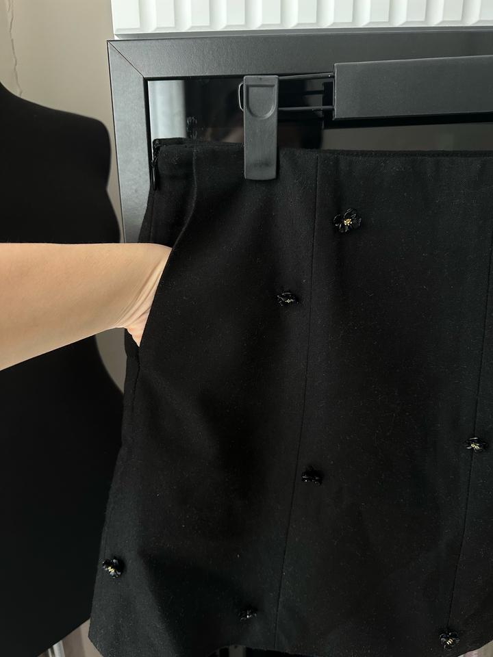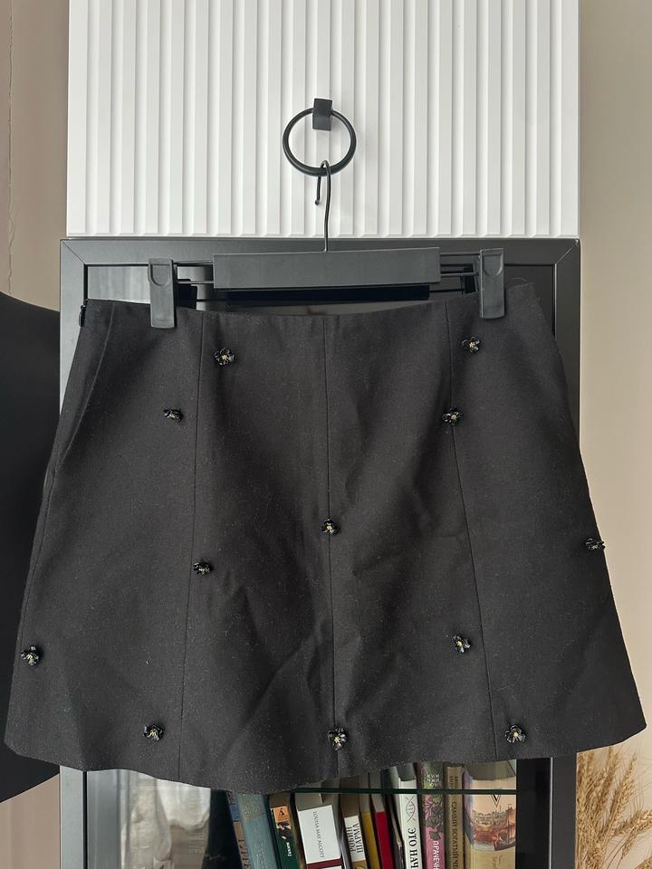 Юбка мини с декоративными металлическими цветами, А-силуэт, молния сбоку, есть боковые карманы, размер М, покупала в шоуруме Eunoia Артикул: 501006