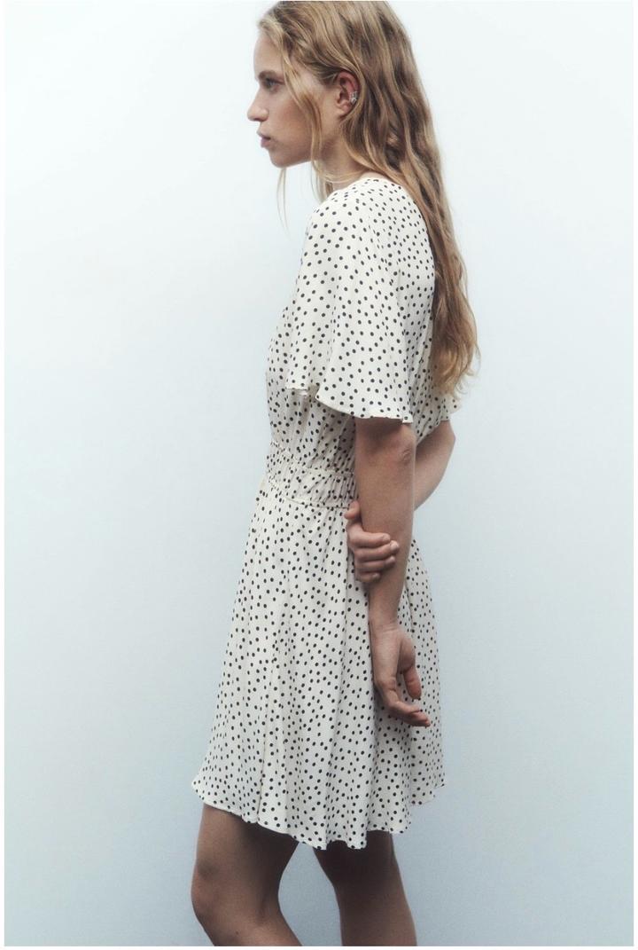 Платье Zara в горошек Струящееся платье с V-образным вырезом и короткими рукавами. На размер S/M Артикул: 501064