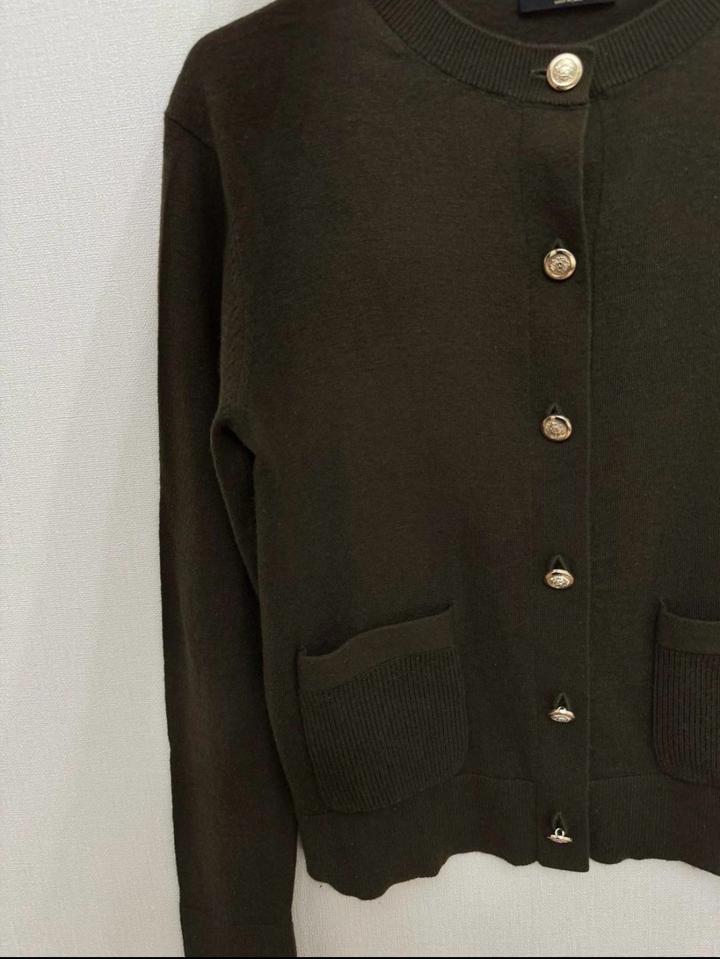 Кардиган Massimo Dutti цвета Хаки (темно-зеленый) с золотистыми пуговицами и кармашками спереди (был использован редко, без катышек и торчащих нитей) Кардиган имеет маленький, незаметный дефект Размер XS Артикул: 501070