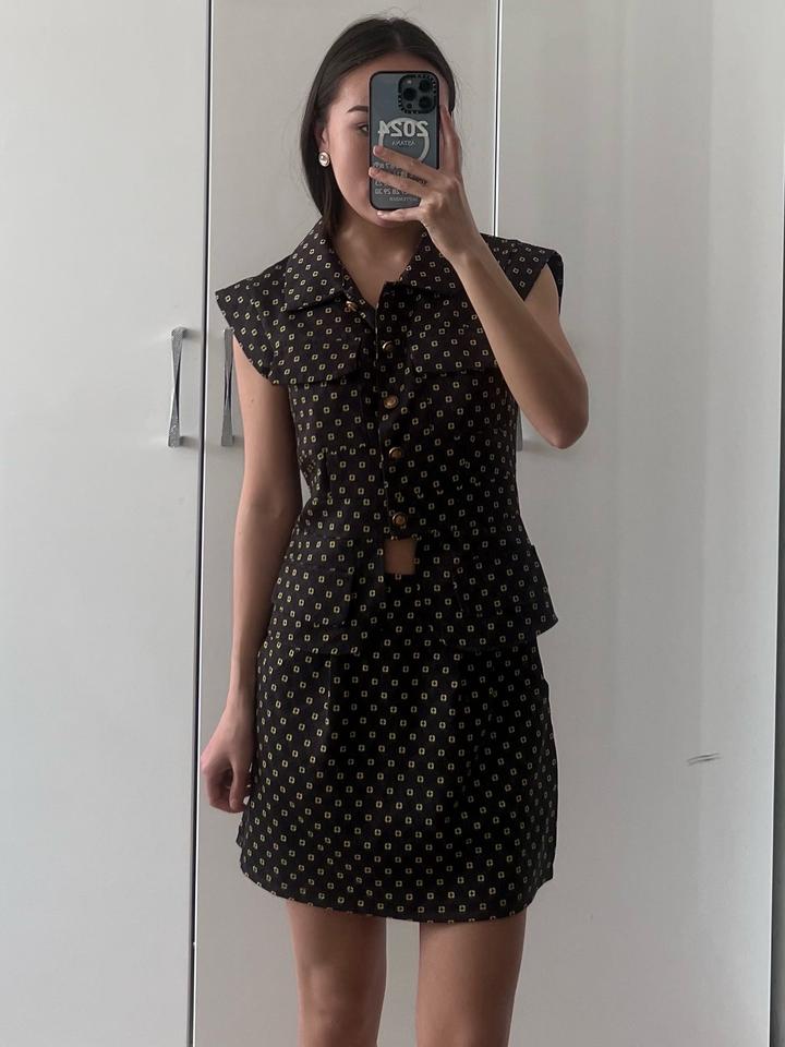 Костюм из юбки и жилетки с интересным принтом, идеально подойдет для офиса или просто выйти за кофе, в отлично состоянии Артикул: 501123