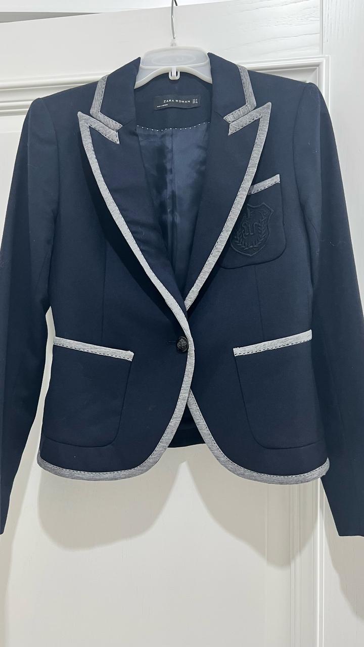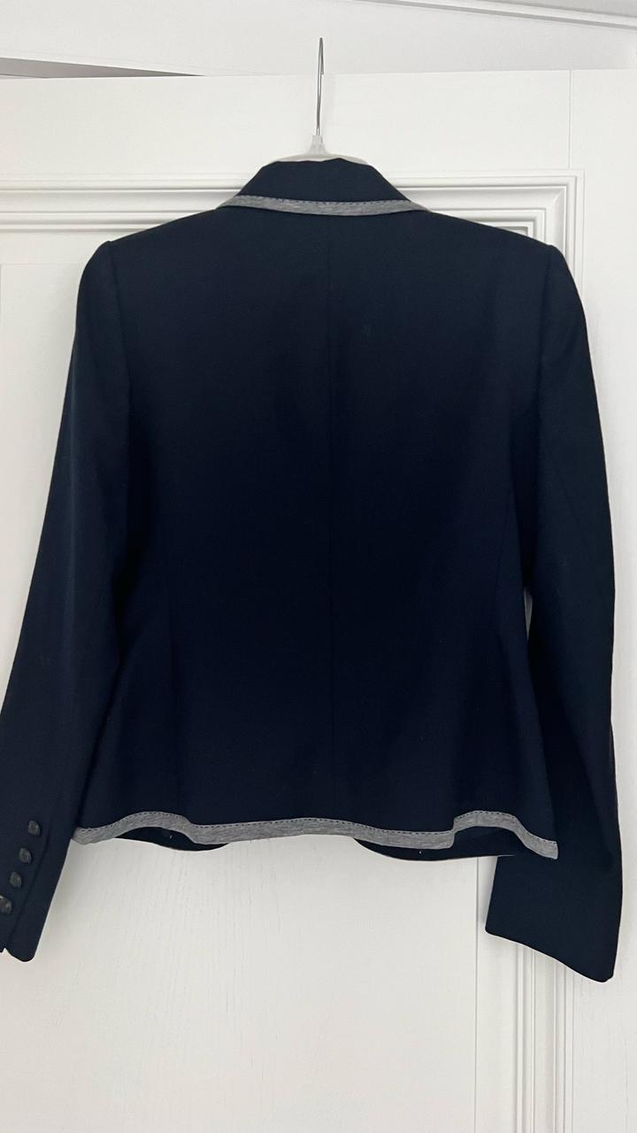 Продается синий шерстяной пиджак Бренда Zara, приталенный крой на одной пуговице на подкладе , по краям декоративная серая отделка, на размер s, в отличном состоянии, цена 8000 тенге. Артикул: 501213