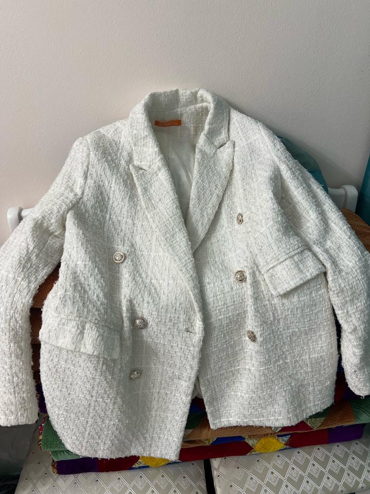 Белый твидовый пиджак. Очень мало одевала, размер 44. В идеальном состояний Артикул: 501441