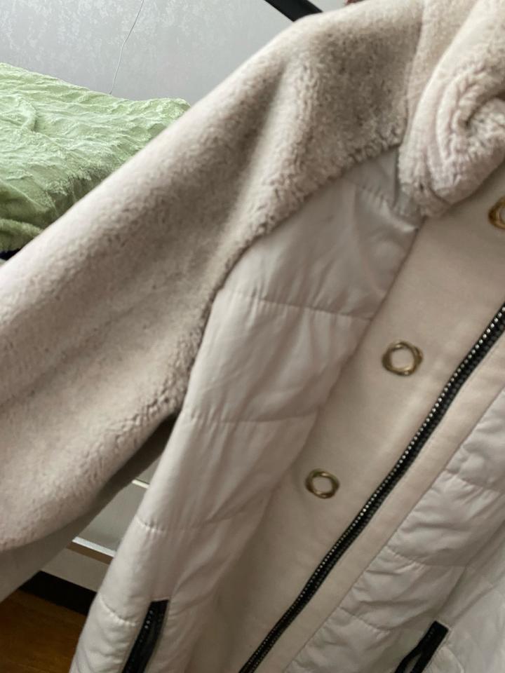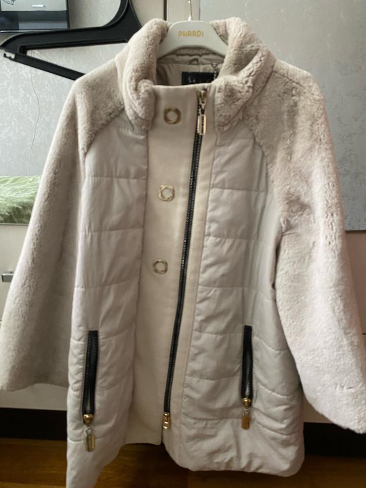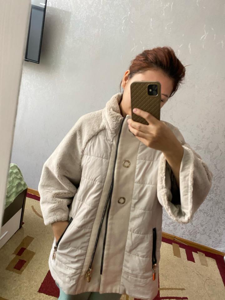 Продаю бежевую куртку, рукава эко, длина средняя, как оверсайз смотрится, подходит на размер 42-44. Пишите на ватсап +7### ### ## ##. Город Алматы Артикул: 501516
