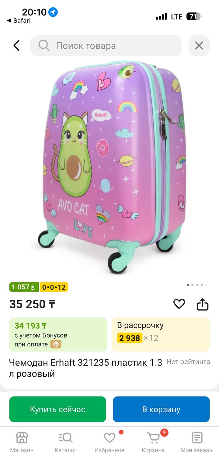 Покупали за 30000 тенге Есть небольшие царапины Брали в два путешествия 🙂 Собираться в поездку - особое удовольствие! Подарите его маленькому путешественнику с чемоданом Erhaft. Закрывается на молнию. Пластиковый корпус. Выдвижная ручка. Чемодан - на колесиках. Характеристики Размер: 47×31,5х23 см Вес: 1,3 кг Артикул: 501540