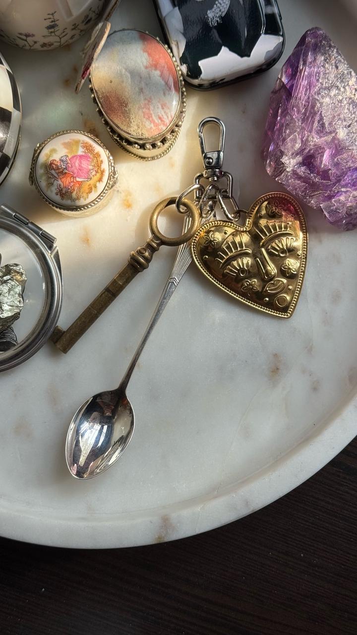 Стильный аксессуар, совмещающий в себе истории разных времен! Винтажная ложка и металлический ключ с блошиного рынка Грузии и металлическое сердце *винтажная фурнитура состоит из исторических артефактов, и может иметь потертости, неровности и неустранимые затемнения, возникшие от времени* ещё больше украшений - @nasta.vintage Артикул: 501558