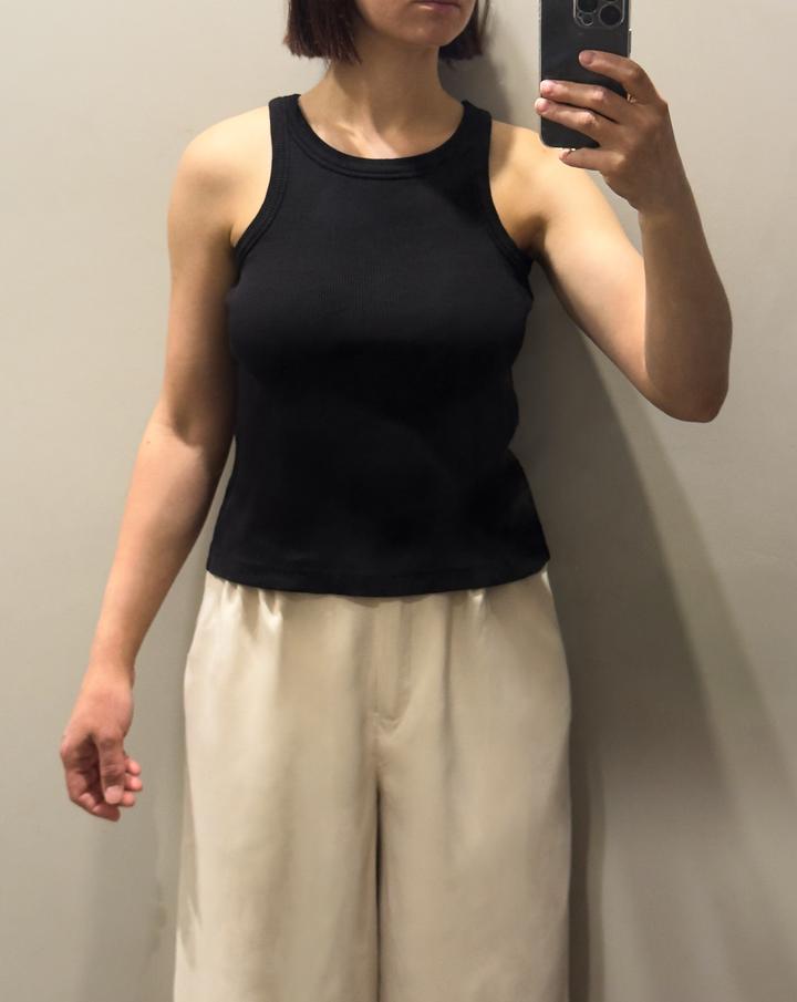 Черная майка Espina. Из плотного, формодержащего трикотажа-кашкорсе (мелкий рубчик). Размер М. На S тоже будет хорошо. Хлопок с добавлением лайкры. Артикул: 501657