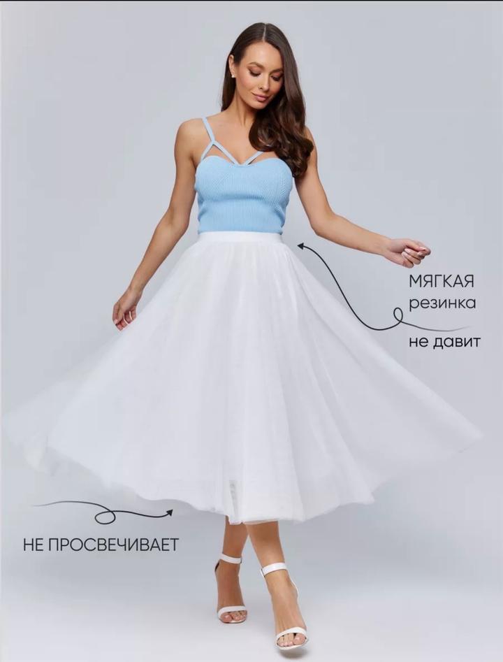 Трехслойная из бесшовного фатина с подкладом. Одевалась один раз на праздник. Размер один 52-60. Куплена на вб, фото товара от туда Артикул: 501727